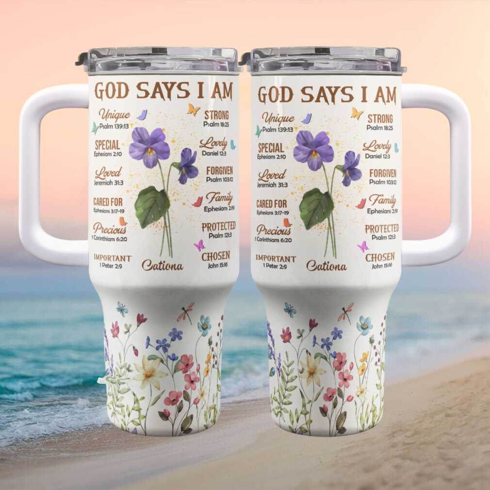 (Personalized “God Says I Am” Bible Verse Violets Stainless Steel Tumbler)Personalized “God Says I Am” Bible Verse Violets Stainless Steel Tumbler, Treat yourself or make a great gift for your loved ones