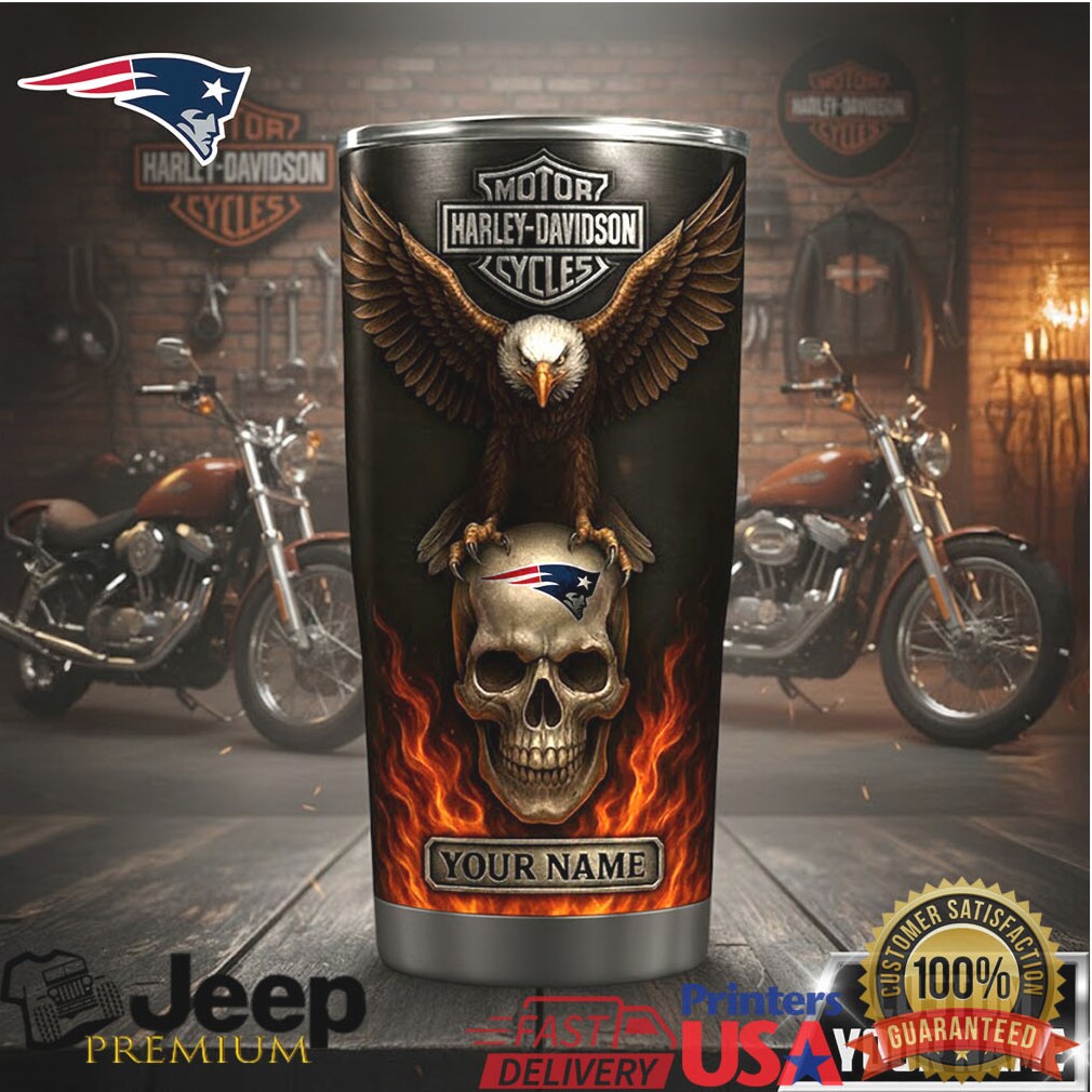 ()Personalized Harley Davidson New England Patriots Skull Tumbler, Sport Tumbler and Funny Tumbler