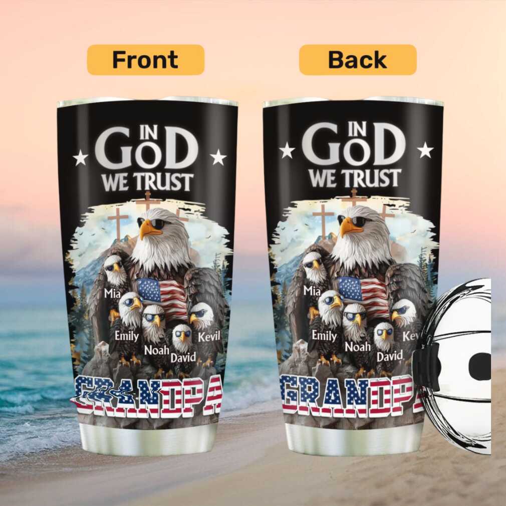 (Personalized In God We Trust Eagle Grandpa Tumbler with Grandkids Names)Personalized In God We Trust Eagle Grandpa Tumbler with Grandkids Names, Treat yourself or make a great gift for your loved ones