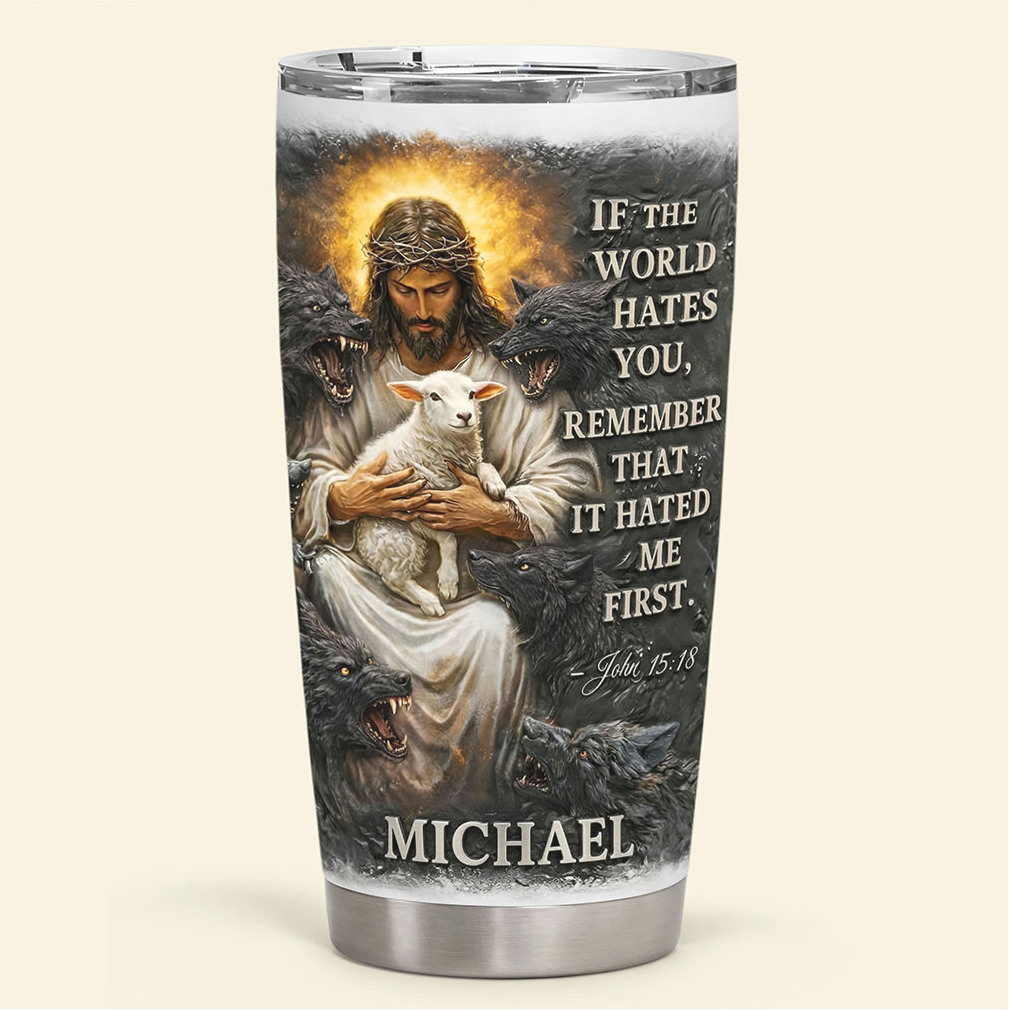 🥤 About Personalized Jesus Carrying Lamb “If The World Hates You” Christian Tumbler
