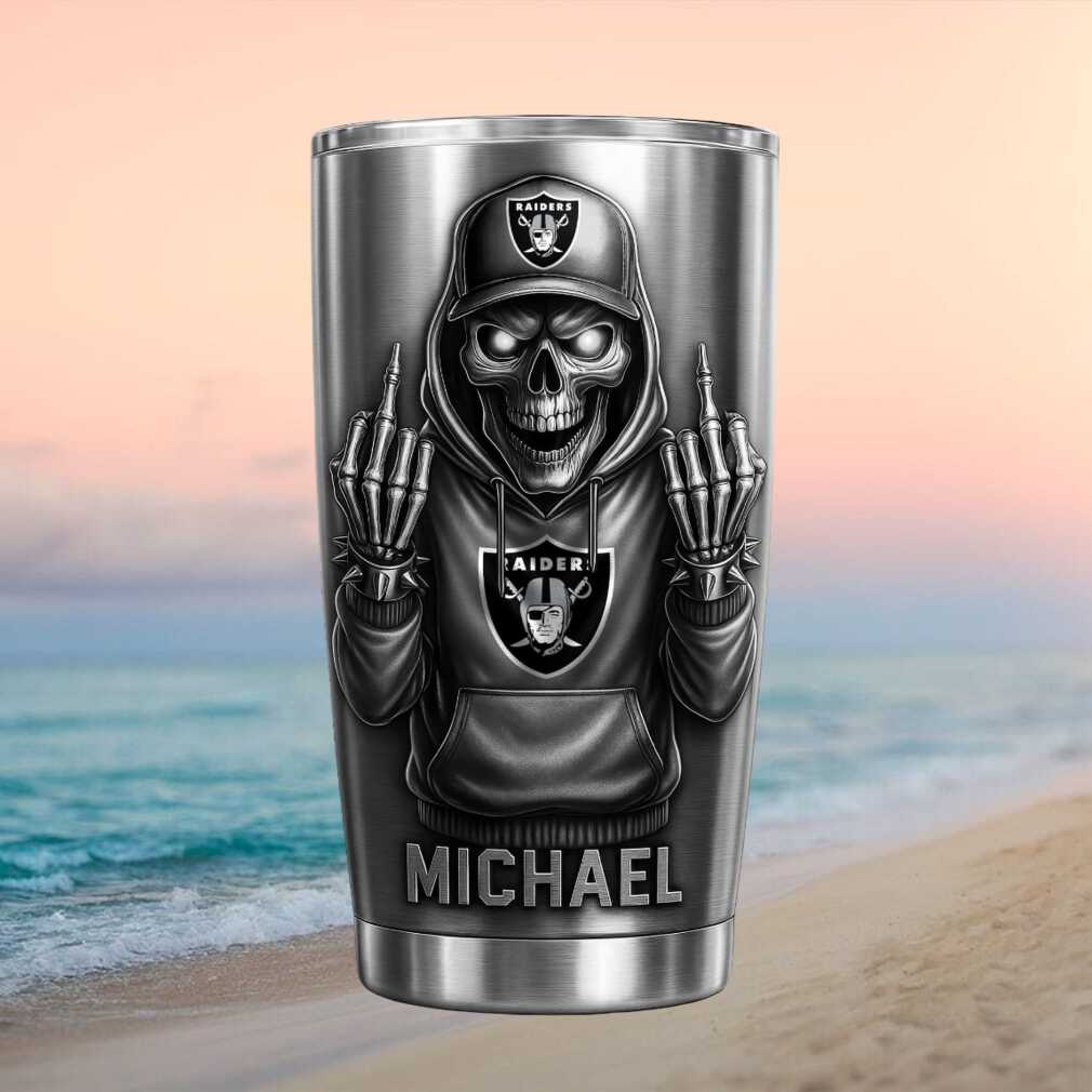 (Personalized Las Vegas Raiders Skeleton Middle Finger Travel Mug)Personalized Las Vegas Raiders Skeleton Middle Finger Travel Mug, Treat yourself or make a great gift for your loved ones