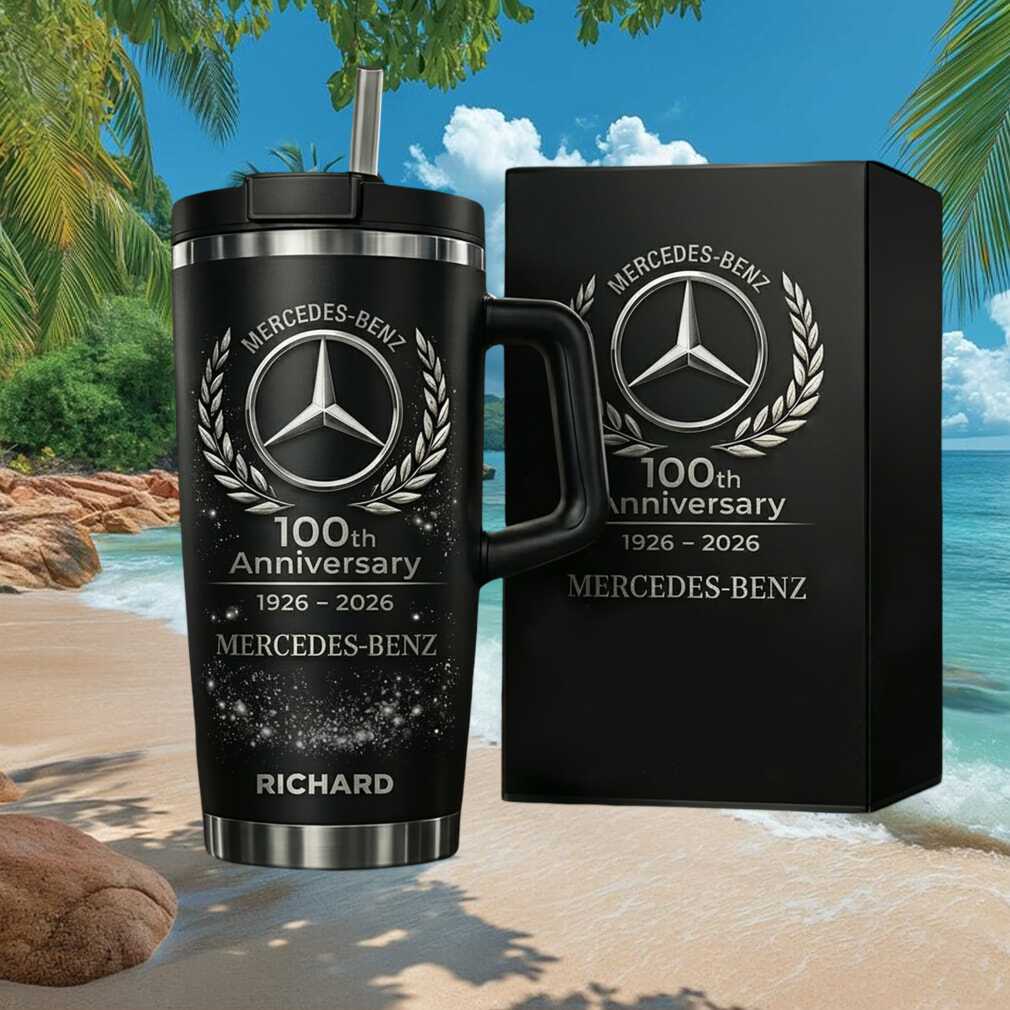 (Personalized Mercedes Benz 100th Anniversary Silver 40oz Tumbler)Personalized Mercedes Benz 100th Anniversary Silver 40oz Tumbler, Treat yourself or make a great gift for your loved ones