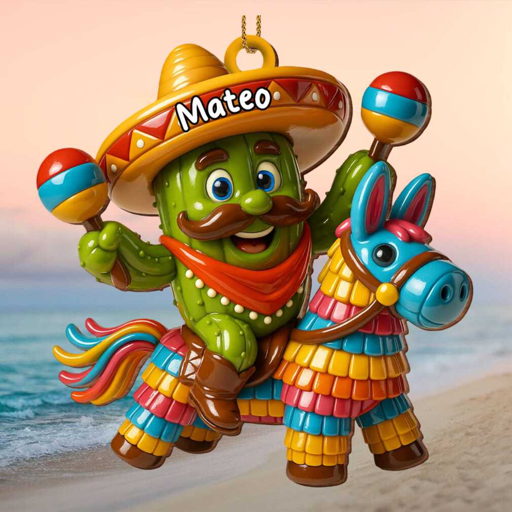 🥤 About Personalized Mexican Cactus Riding Pinata Ornament Custom Name