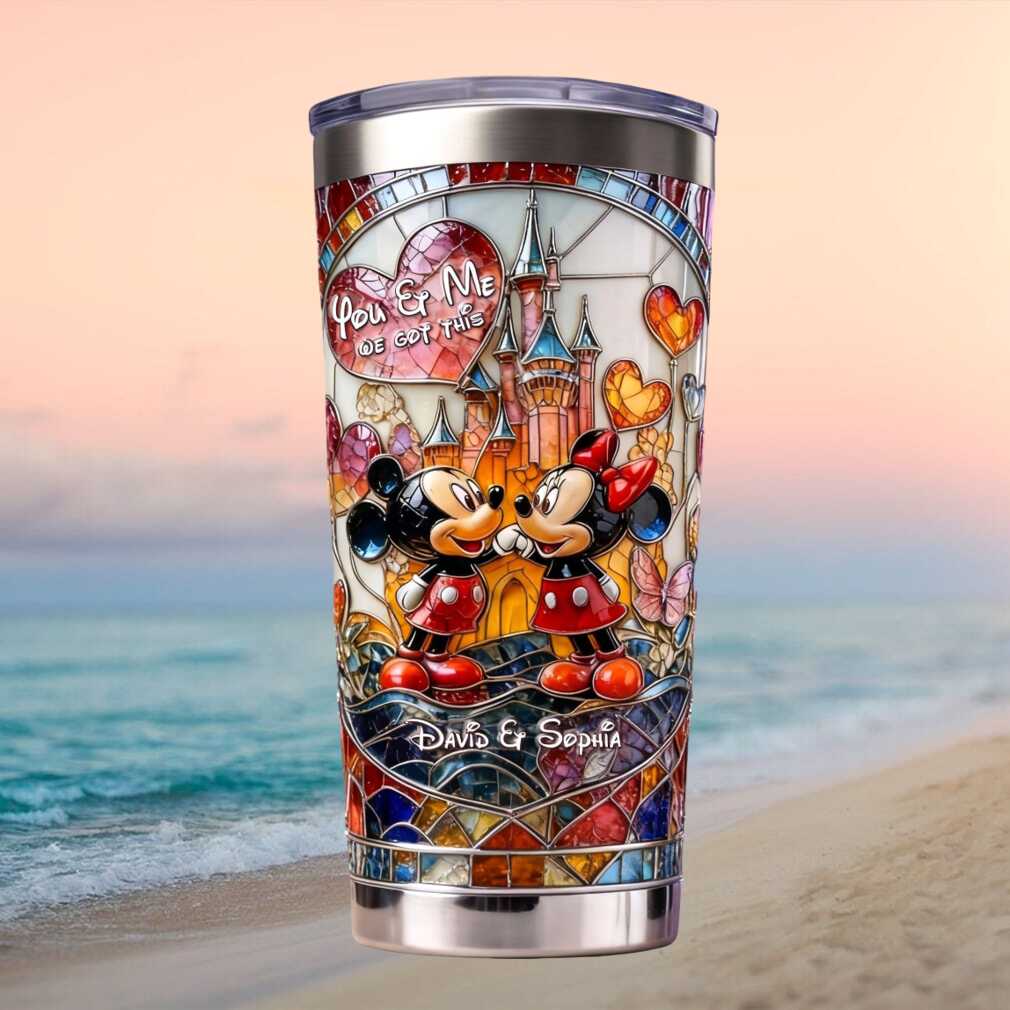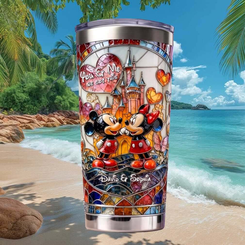 (Personalized Mickey and Minnie Mouse Stained Glass Castle Wedding Anniversary Tumbler)Personalized Mickey and Minnie Mouse Stained Glass Castle Wedding Anniversary Tumbler, Treat yourself or make a great gift for your loved ones