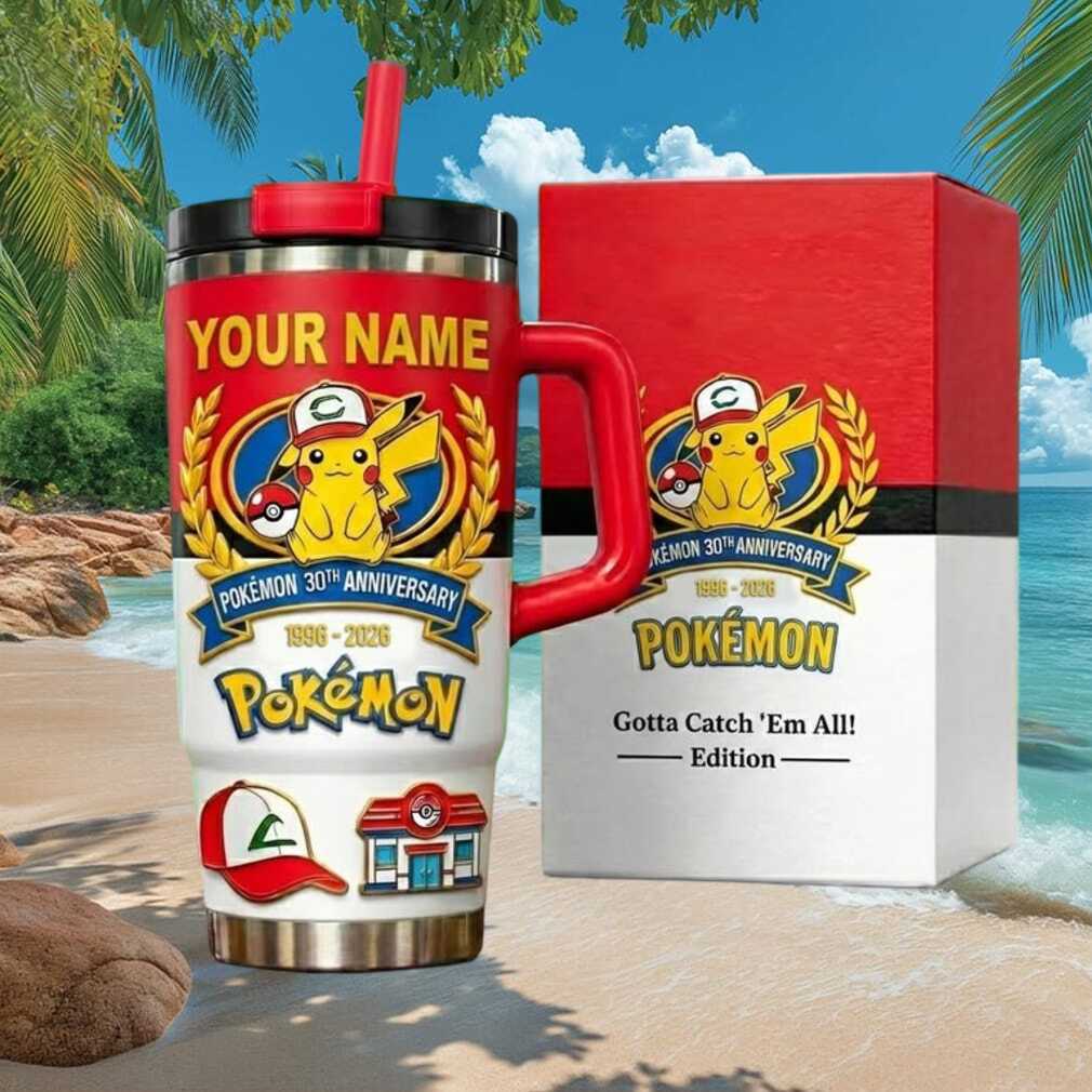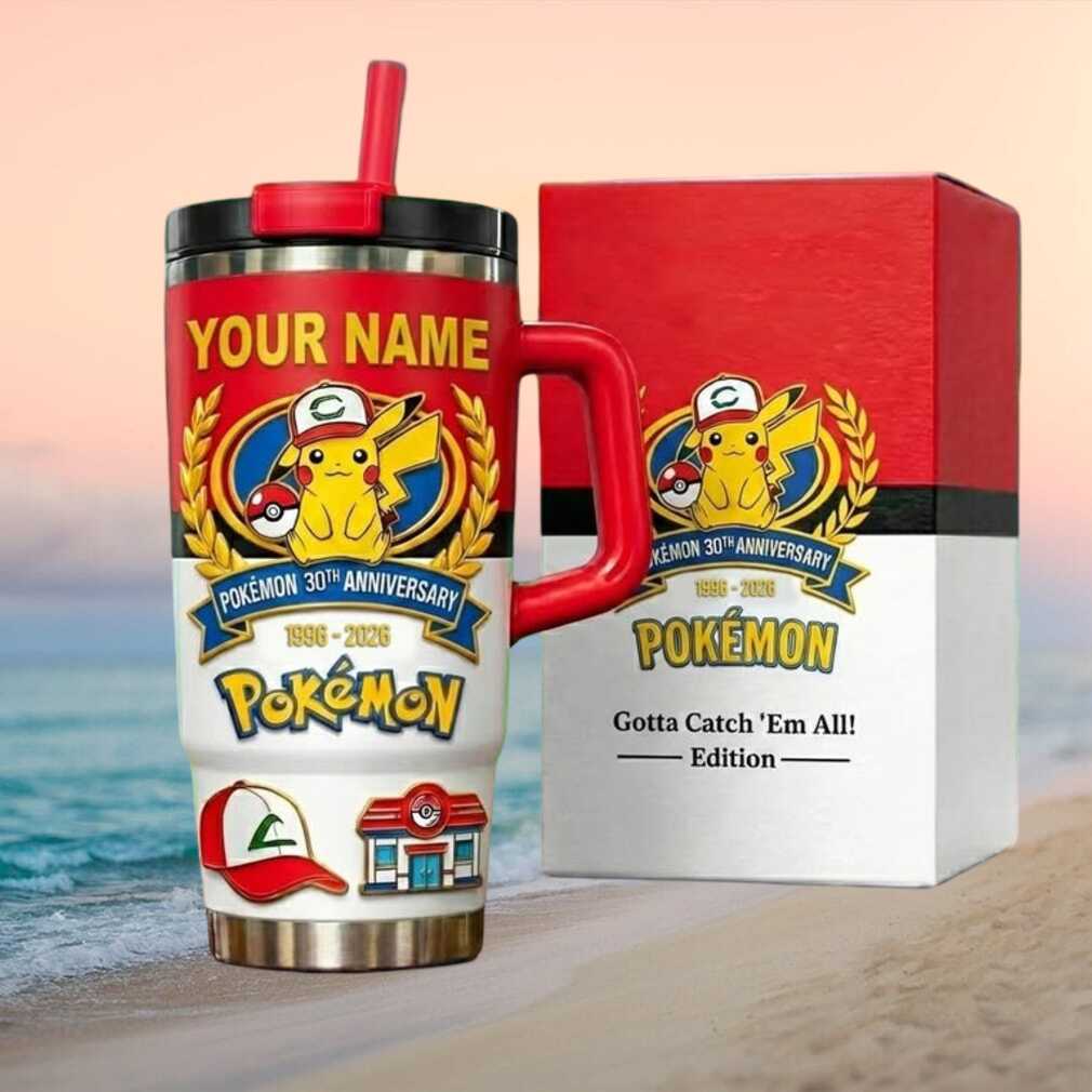 Personalize your Pokémon journey with this 30th Anniversary Pikachu 40oz tumbler with handle. Add your trainer name to this vibrant collector tumbler on premium double-wall insulated stainless steel. The perfect gift for Pokémon fans of all generations.