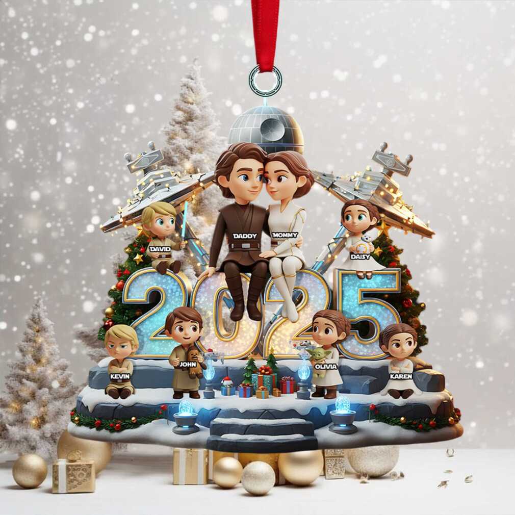 This ornament is ideal for Star Wars-loving families, collectors of Star Wars memorabilia, and anyone looking for a special and personalized Christmas gift. Hang it proudly on your Christmas tree, display it as a year-round decoration, or present it as a heartfelt gift to family members. It’s perfect for adding a personal touch to holiday celebrations and showcasing your family’s unique interests.