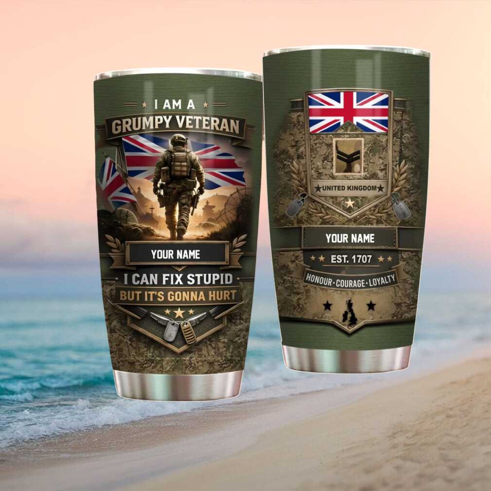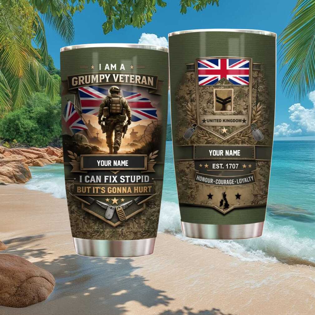 A proud tribute to those who served under the Union Jack — this personalized British Army veteran tumbler features UK military camo, regimental-inspired design, and custom name. A meaningful 40oz insulated gift for veterans of Her Majesty’s armed forces.