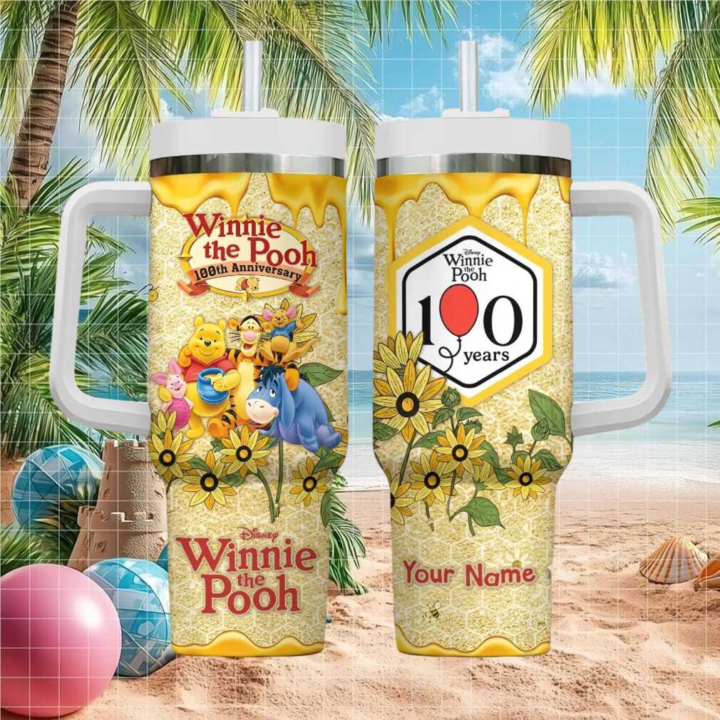 (Personalized Winnie the Pooh 100th Anniversary Honeycomb & Sunflower Tumbler)Personalized Winnie the Pooh 100th Anniversary Honeycomb & Sunflower Tumbler, Treat yourself or make a great gift for your loved ones