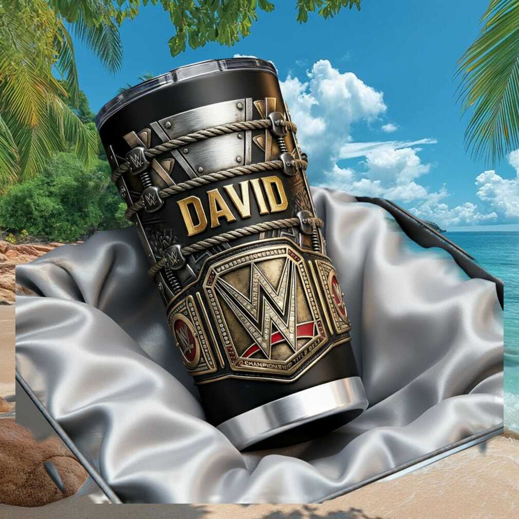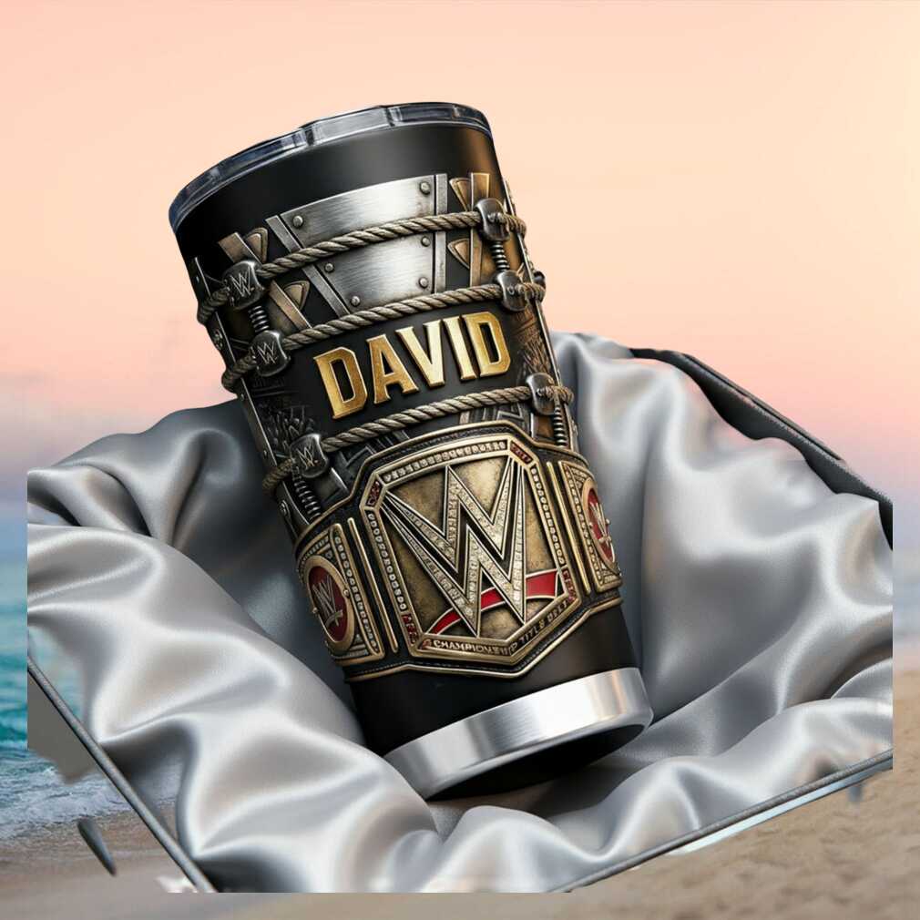 Feel like a champion with this personalized WWE championship belt 3D engraved stainless steel tumbler. The ultimate gift for wrestling fans who want to drink like a champ every single day.