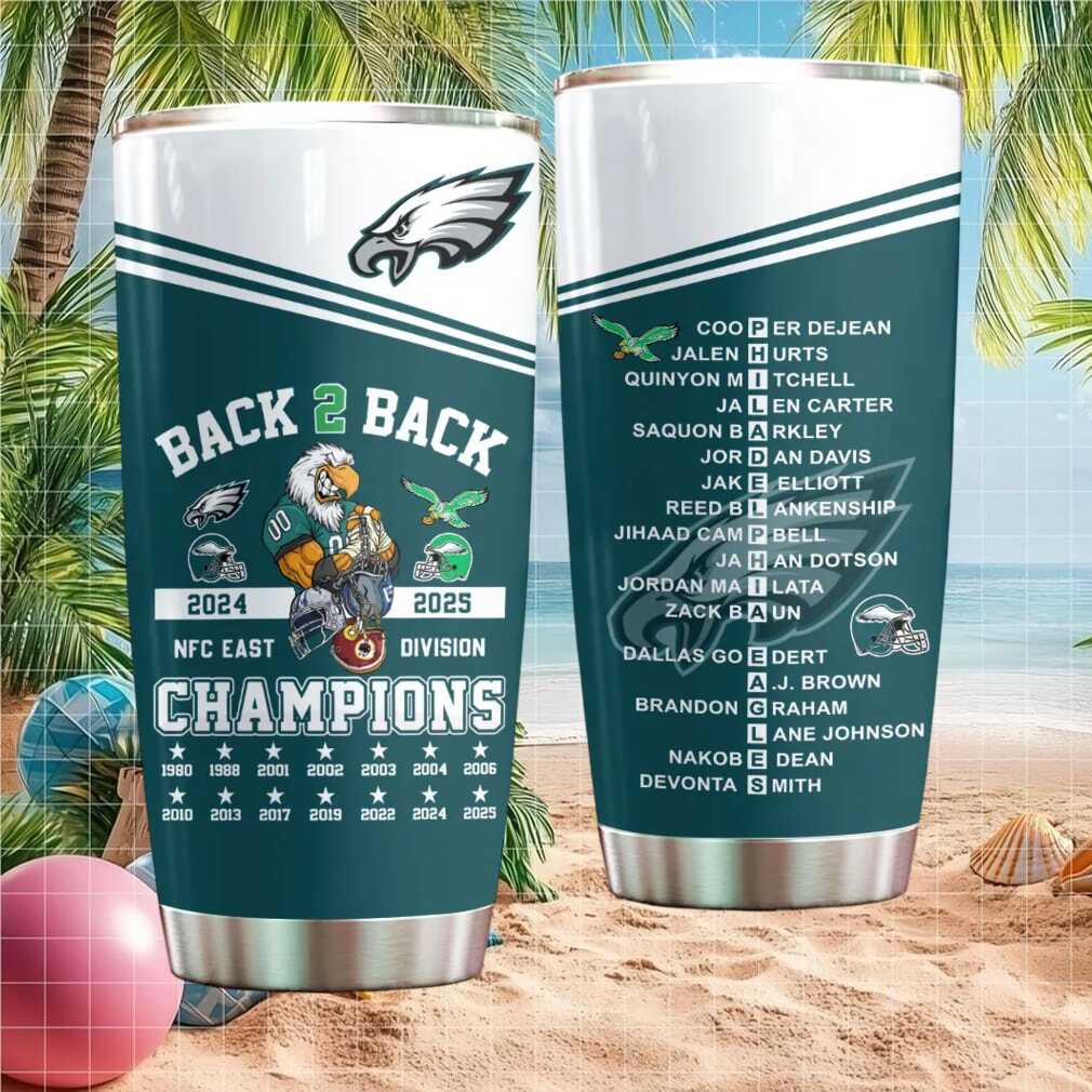 (Philadelphia Eagles Back 2 Back 2024 2025 NFC East Division Champions Roster Player Names Graphic Tumbler)Philadelphia Eagles Back 2 Back 2024 2025 NFC East Division Champions Roster Player Names Graphic Tumbler, Treat yourself or make a great gift for your loved ones