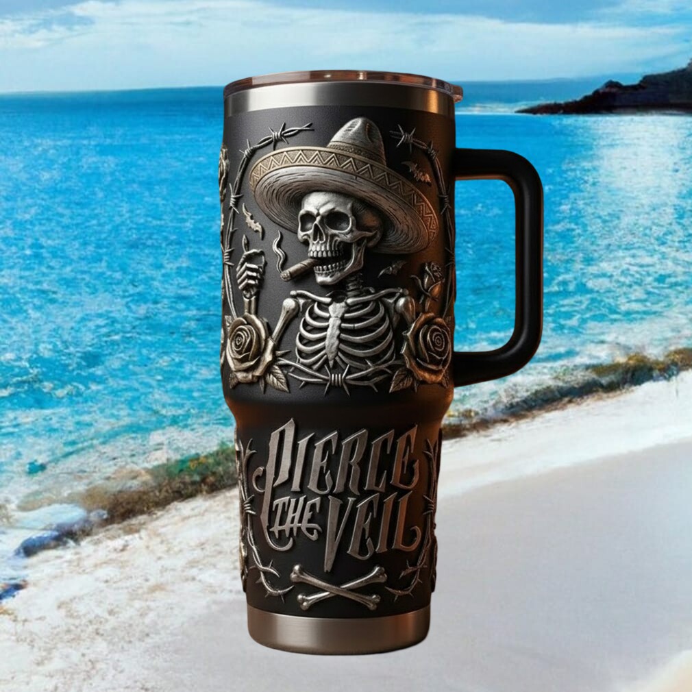 (Pierce The Veil Dia de los Muertos Skeleton Art Tumbler with Handle)Pierce The Veil Dia de los Muertos Skeleton Art Tumbler with Handle, Treat yourself or make a great gift for your loved ones