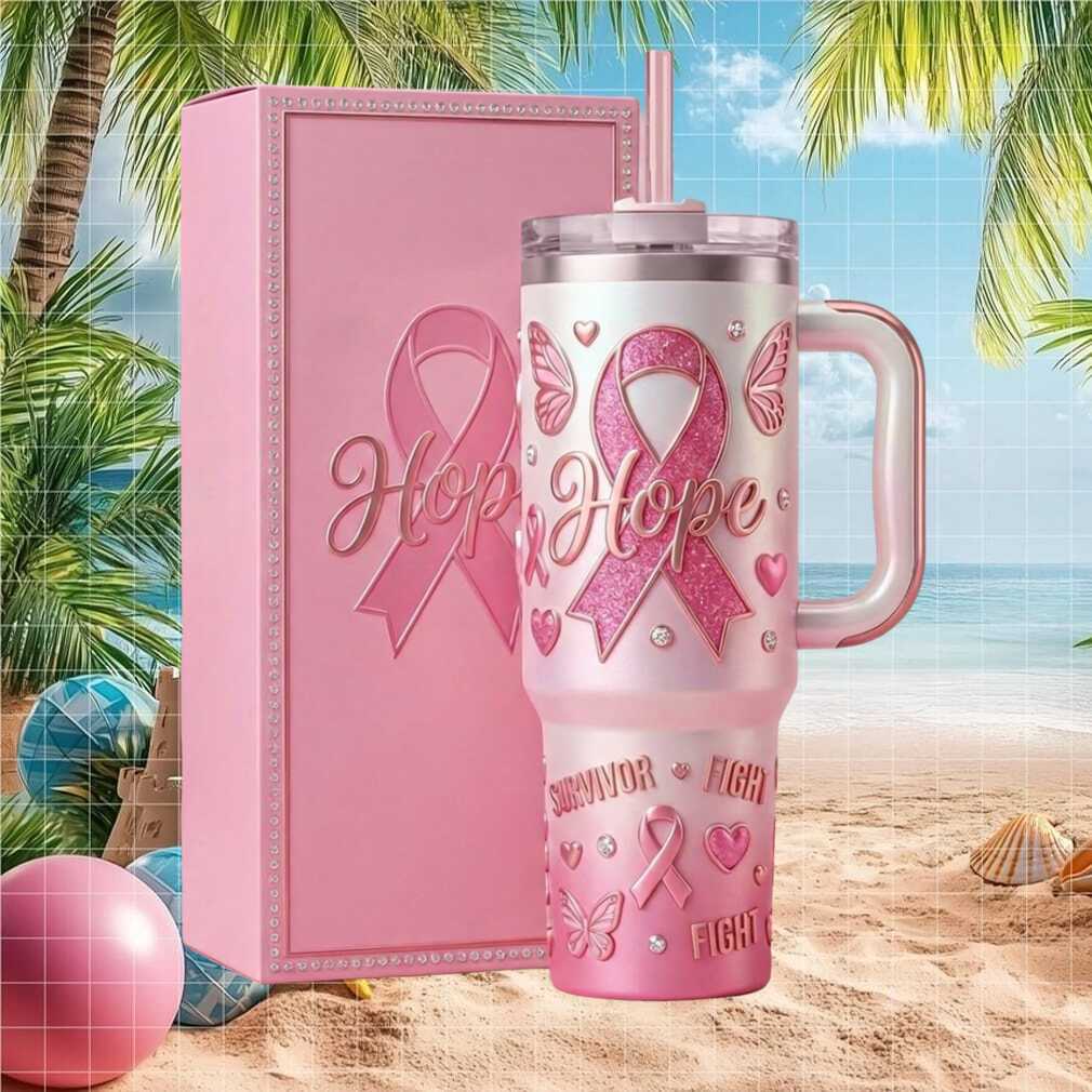 (Pink Ribbon Hope Survivor Glitter Butterfly 3D Embossed Insulated Tumbler)Pink Ribbon Hope Survivor Glitter Butterfly 3D Embossed Insulated Tumbler, Treat yourself or make a great gift for your loved ones