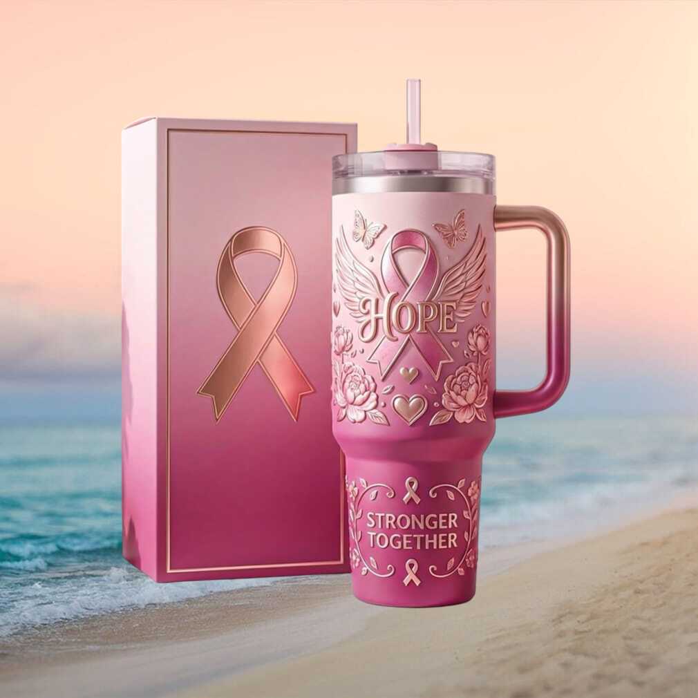 🥤 About Pink Ribbon “Stronger Together” Breast Cancer Awareness Butterfly Ombre 40oz Tumbler