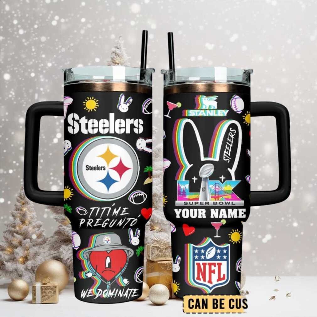 🥤 About PIT Steelers Football x Bad Bunny Custom Stanley Cup 40 oz Tumbler With Handle