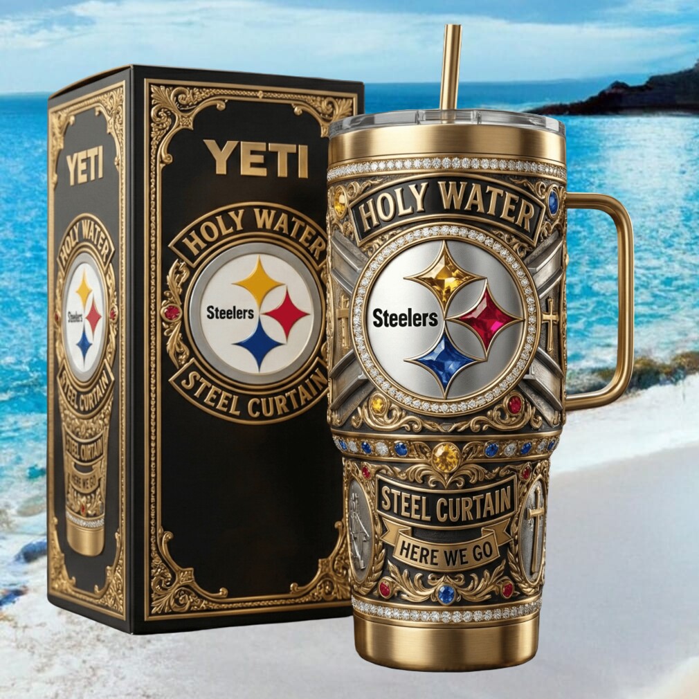 (Pittsburgh Steelers Holy Water Steel Curtain NFL Fan 40oz Tumbler)Pittsburgh Steelers Holy Water Steel Curtain NFL Fan 40oz Tumbler, Treat yourself or make a great gift for your loved ones