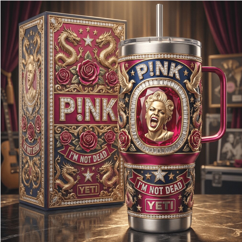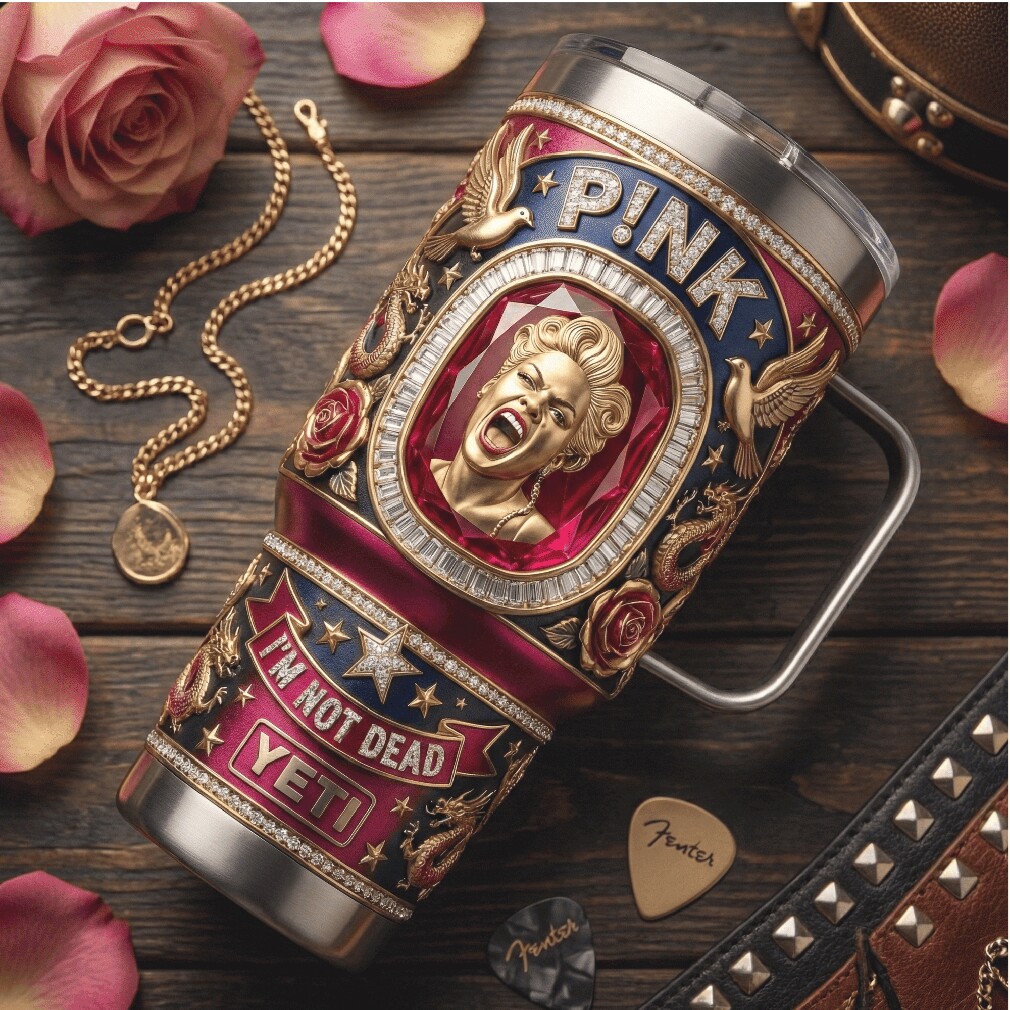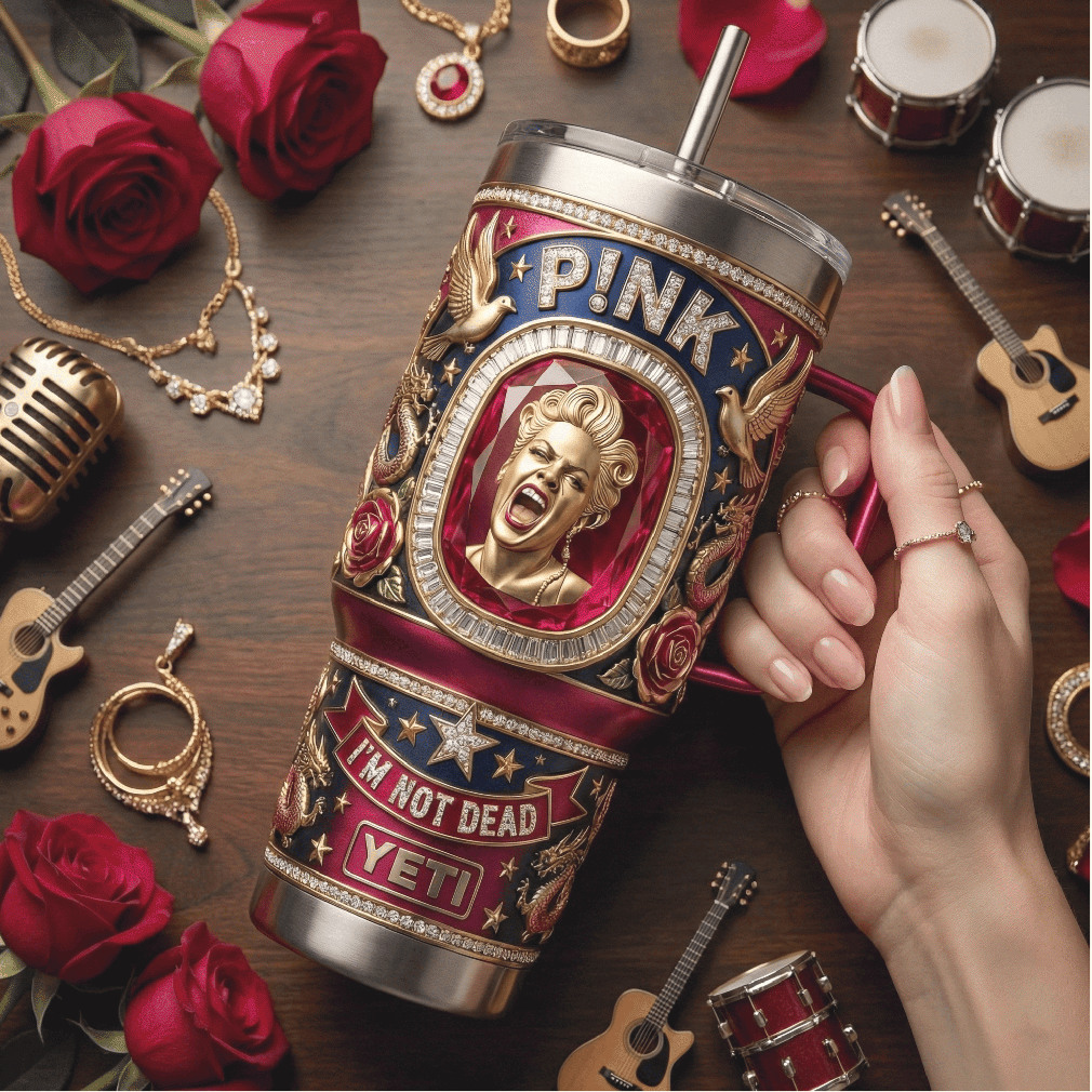 P!NK I’m Not Dead Rock Icon 3D Sculpted Rose Gold Tumbler, Treat yourself or make a great gift for your loved ones