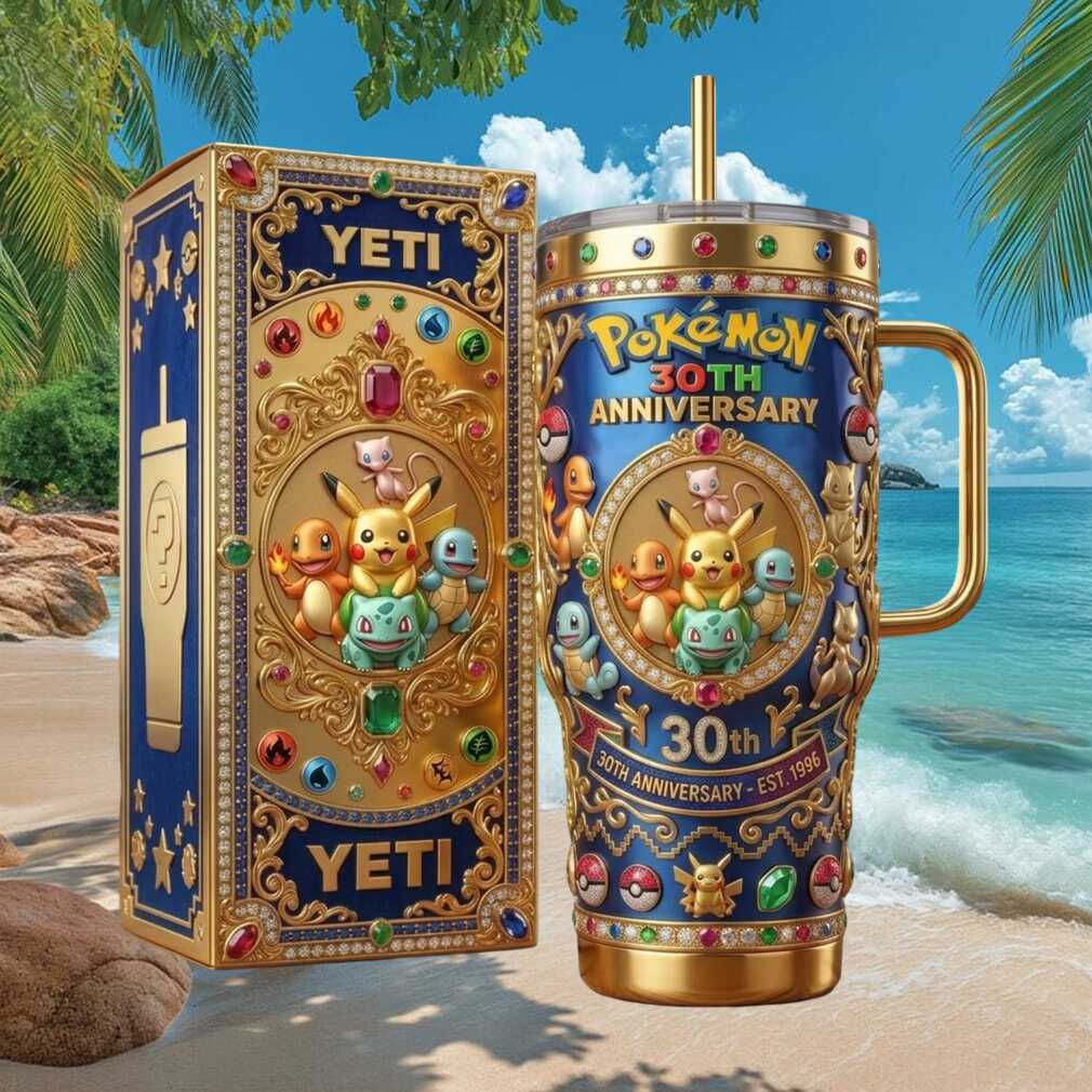 🥤 About Pokemon 30th Anniversary Limited Edition Gold Trim Yeti Style Tumbler