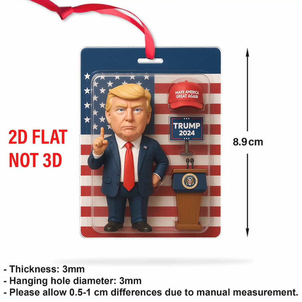 Show your support this holiday season with a President Trump 2D Acrylic Ornament! Perfect for adding a touch of MAGA to your Christmas tree or car, this ornament is sure to spark conversation. It’s more than just a decoration; it’s a statement piece for proud supporters and collectors alike.