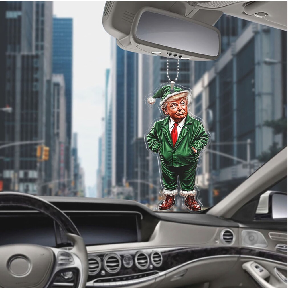Ready to bring some festive political cheer to your daily drive this holiday season? The President Trump Santa Car Ornament is a uniquely funny and eye-catching accessory for your vehicle. Imagine Donald Trump as Santa Claus, spreading holiday spirit wherever you go! This ornament is perfect for those who love political humor and want to add a distinctive, amusing touch to their car decor. It’s an ideal gift that’s sure to bring smiles and spark conversations on the road.