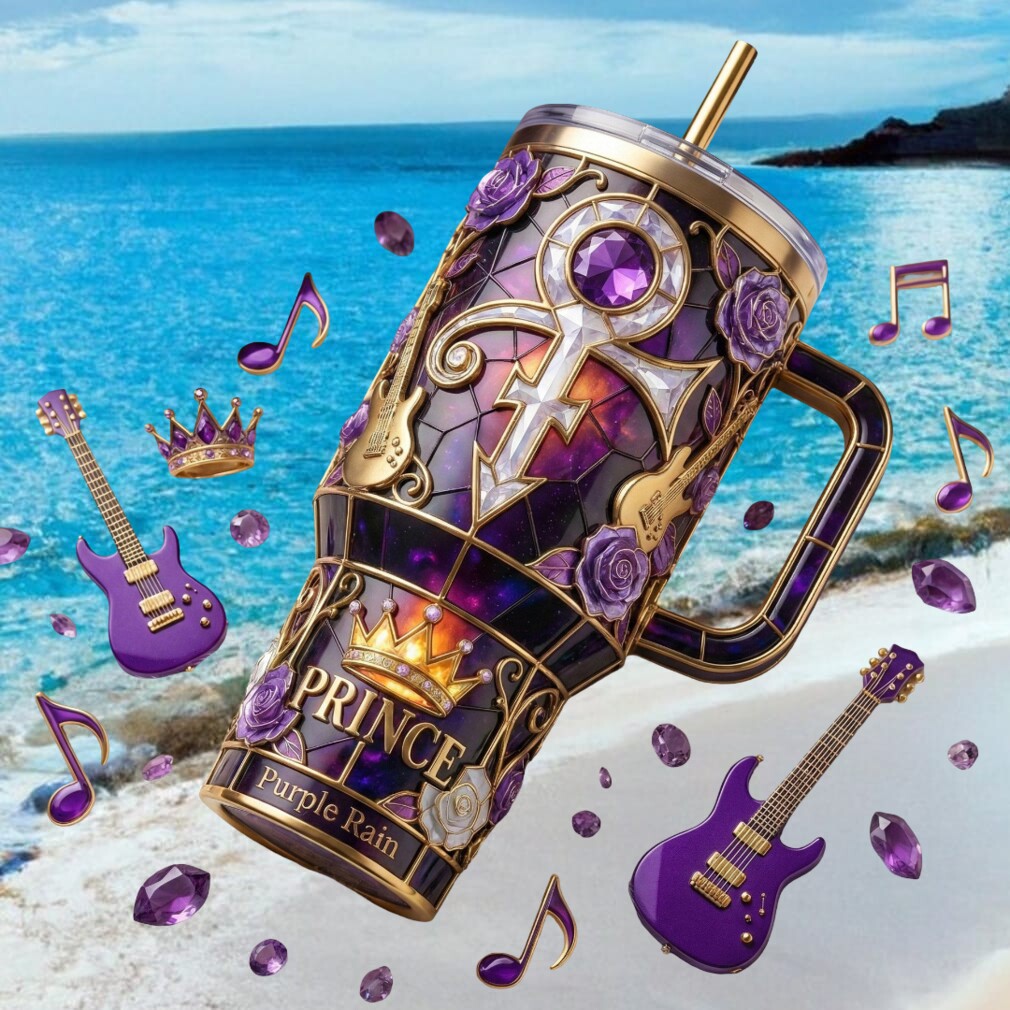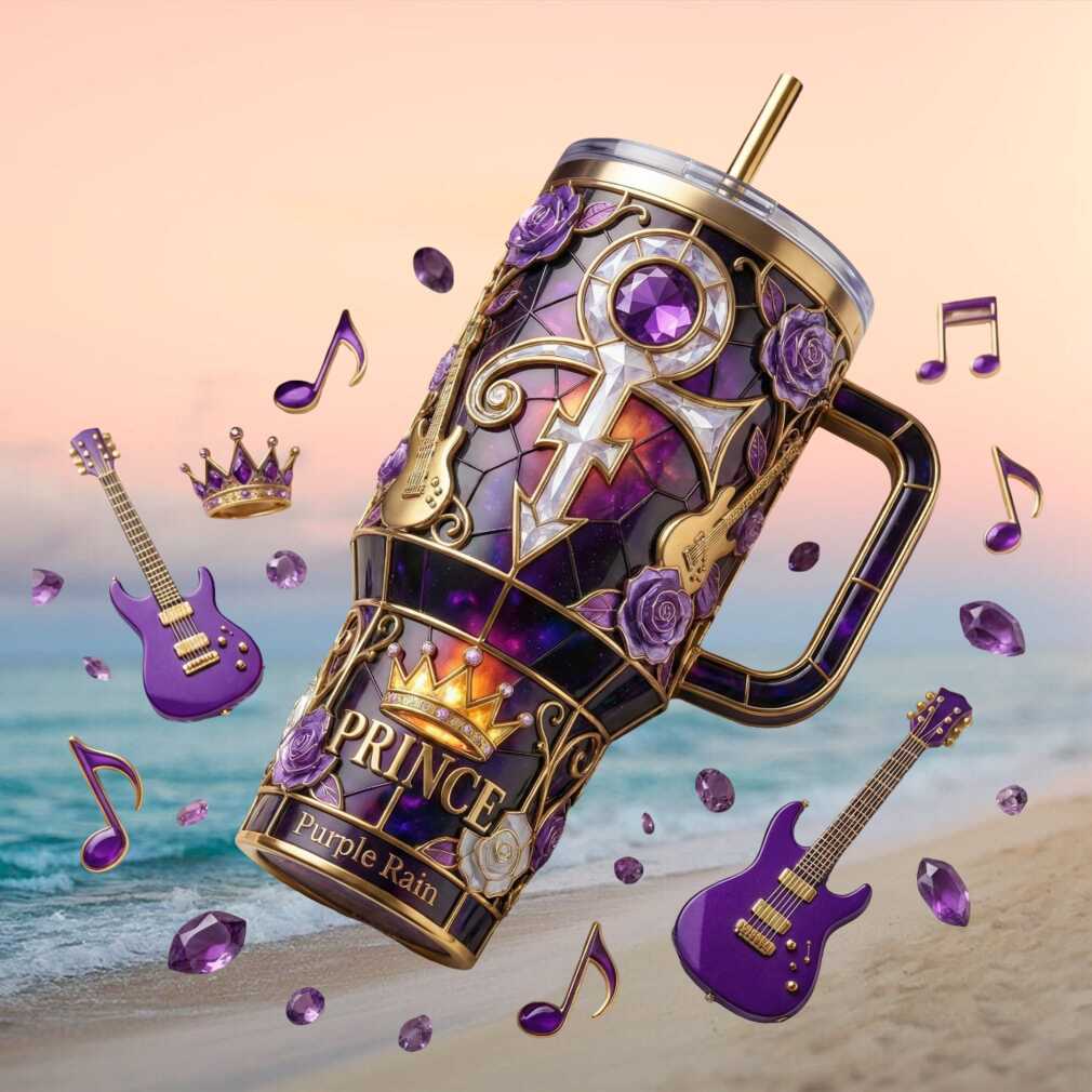 (Prince “Purple Rain” Stained Glass Tribute 40oz Tumbler with Purple Guitar Charms)Prince “Purple Rain” Stained Glass Tribute 40oz Tumbler with Purple Guitar Charms, Treat yourself or make a great gift for your loved ones