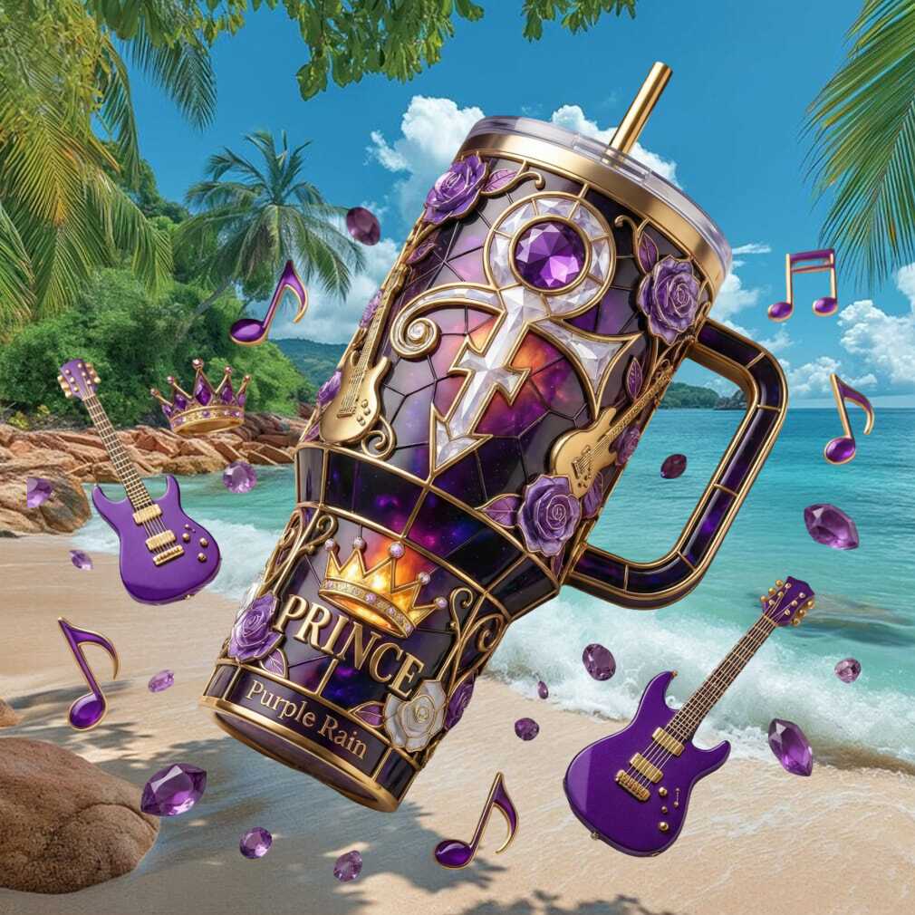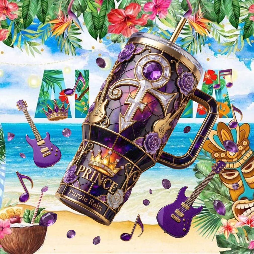 (Prince Purple Rain Symbol 3D Stained Glass Guitar Tribute Tumbler)Prince Purple Rain Symbol 3D Stained Glass Guitar Tribute Tumbler, Treat yourself or make a great gift for your loved ones