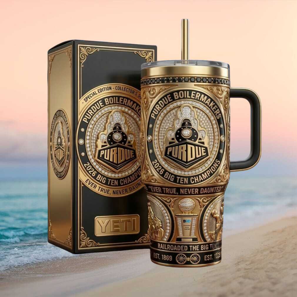 Celebrate Purdue Boilermakers’ 2026 Big Ten Championship with this stunning Gold Luxury Commemorative 40oz tumbler. Dressed in rich old gold and black with championship artwork and Boilermaker pride, it captures the electricity of Ross-Ade Stadium at its finest. Premium insulated stainless steel construction ensures your celebration drink stays at the perfect temperature. A golden keepsake for every Purdue fan who made it through the championship journey.
