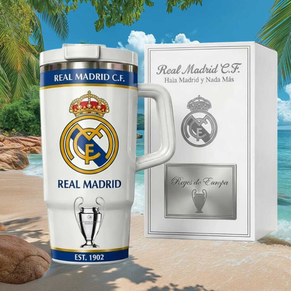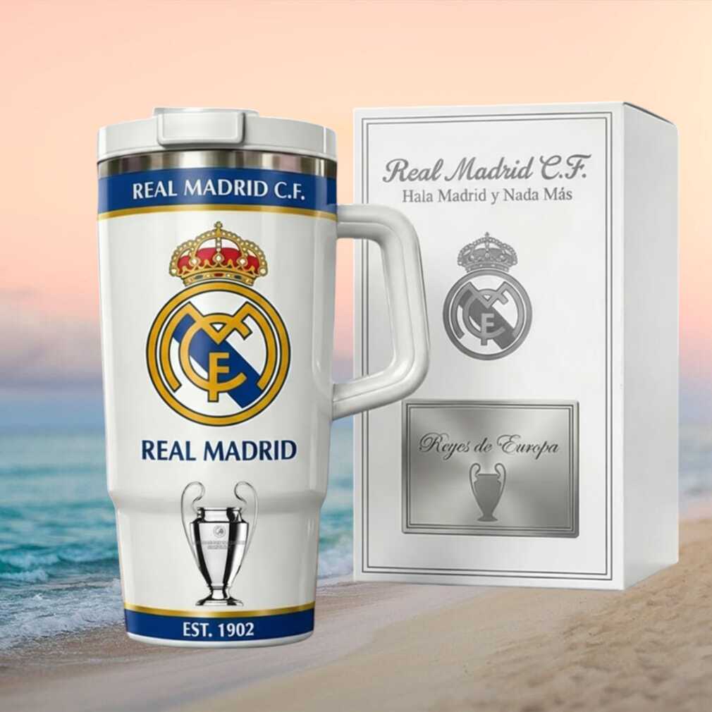 Celebrate your passion with this premium 40oz stainless steel insulated tumbler featuring a stunning Real Madrid C F Reyes De design. Crafted for true fans and collectors, this Soccer edition tumbler keeps drinks cold for 24 hours and hot for 12 hours. Double-wall vacuum insulation and a durable powder-coated finish make it perfect for everyday use or as a one-of-a-kind gift. Limited edition collectible — a must-have for any dedicated fan.