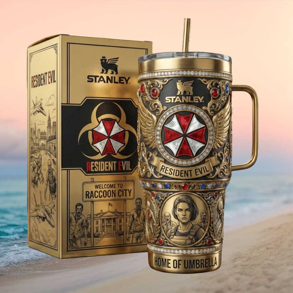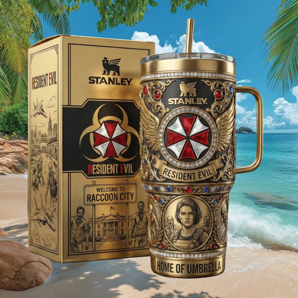 (Resident Evil Umbrella Corp Welcome to Raccoon City Gold Stanley Tumbler)