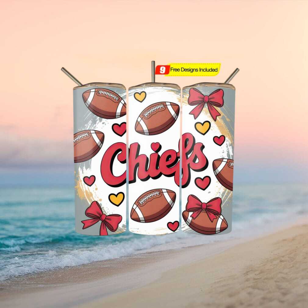 (Retro Chiefs Football Tumbler Wrap Design with Red Bows and Hearts)Retro Chiefs Football Tumbler Wrap Design with Red Bows and Hearts, Treat yourself or make a great gift for your loved ones