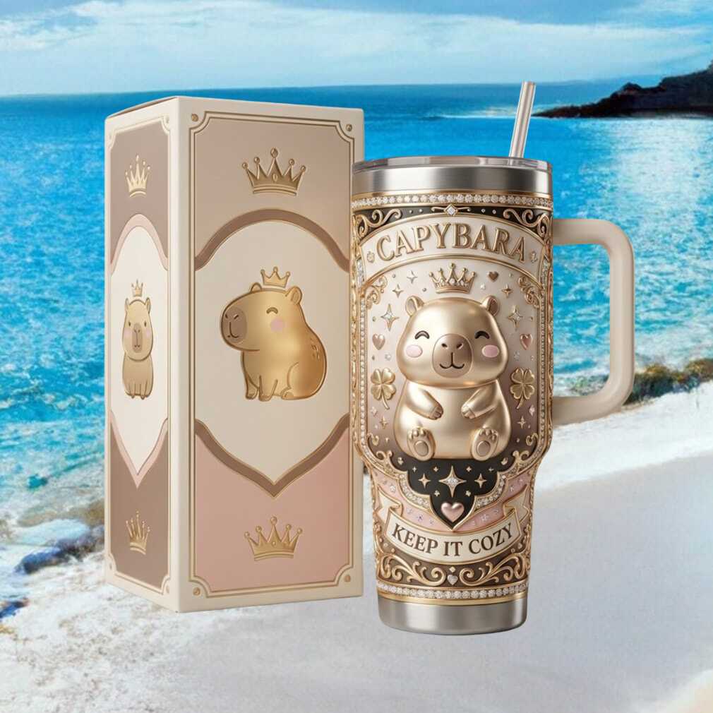 (Royal Capybara “Keep It Cozy” Pastel Pink & Gold Filigree Tumbler)Royal Capybara “Keep It Cozy” Pastel Pink & Gold Filigree Tumbler, Treat yourself or make a great gift for your loved ones