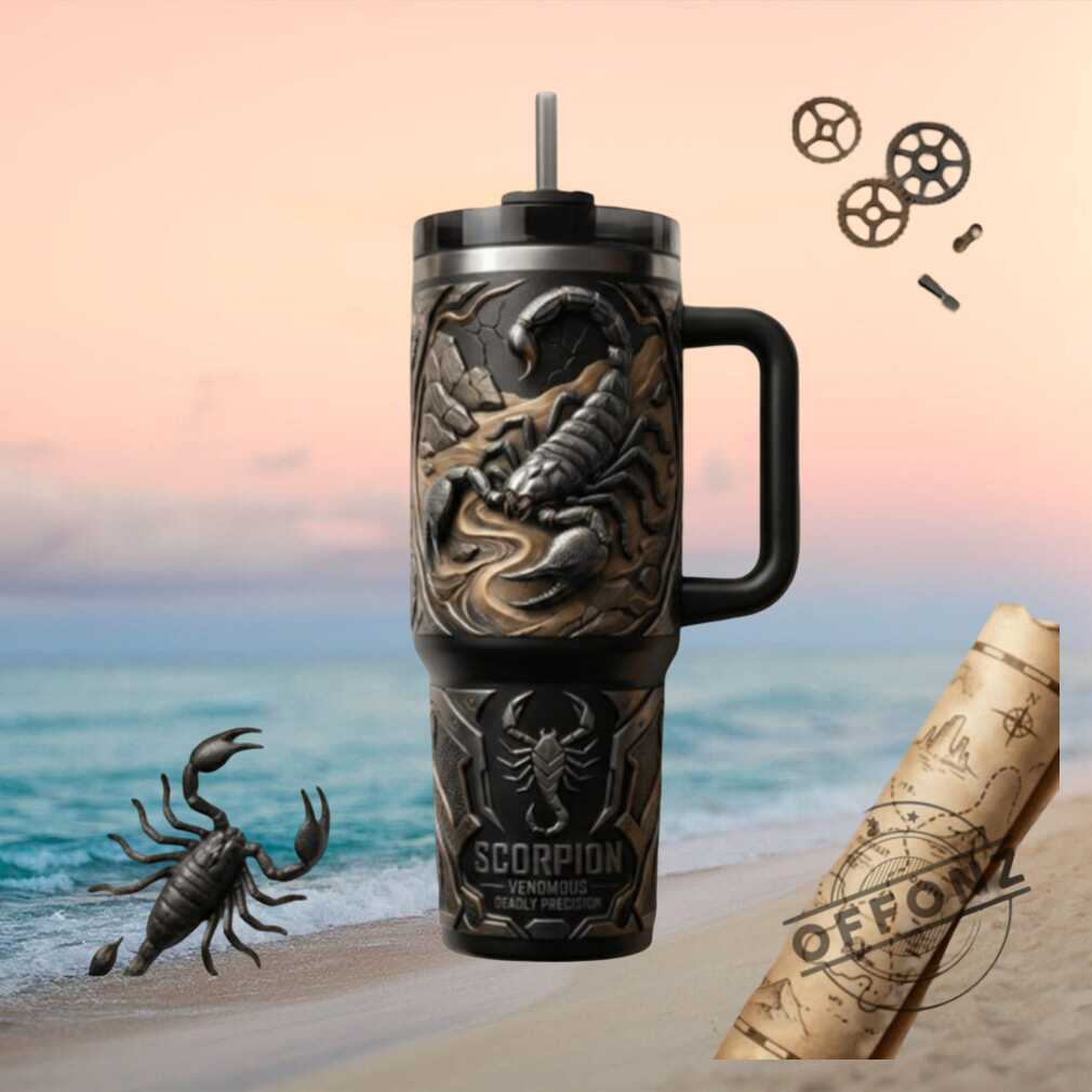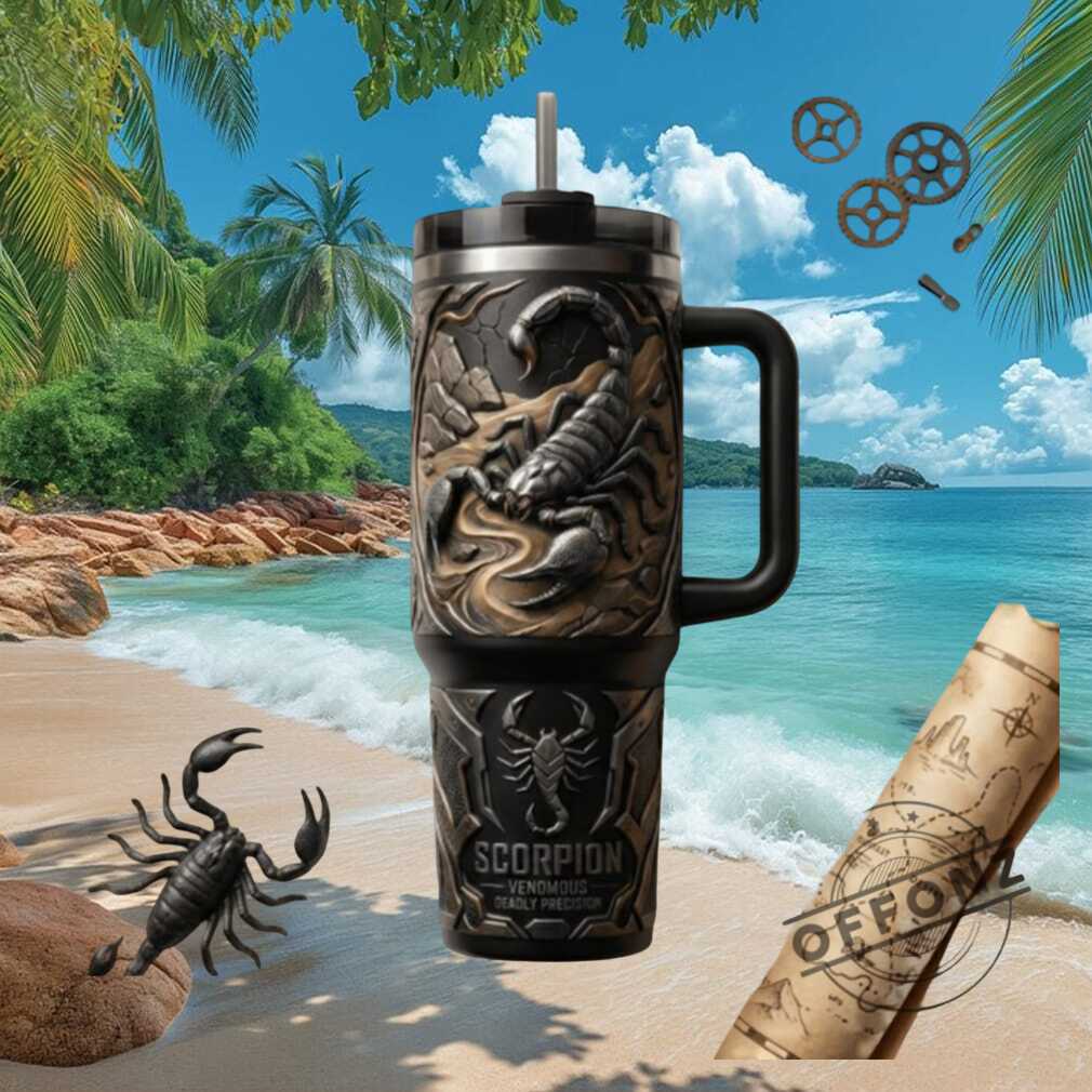 🥤 About Scorpion Venomous Deadly Precision 3D Embossed Gothic 40oz Stainless Steel Tumbler