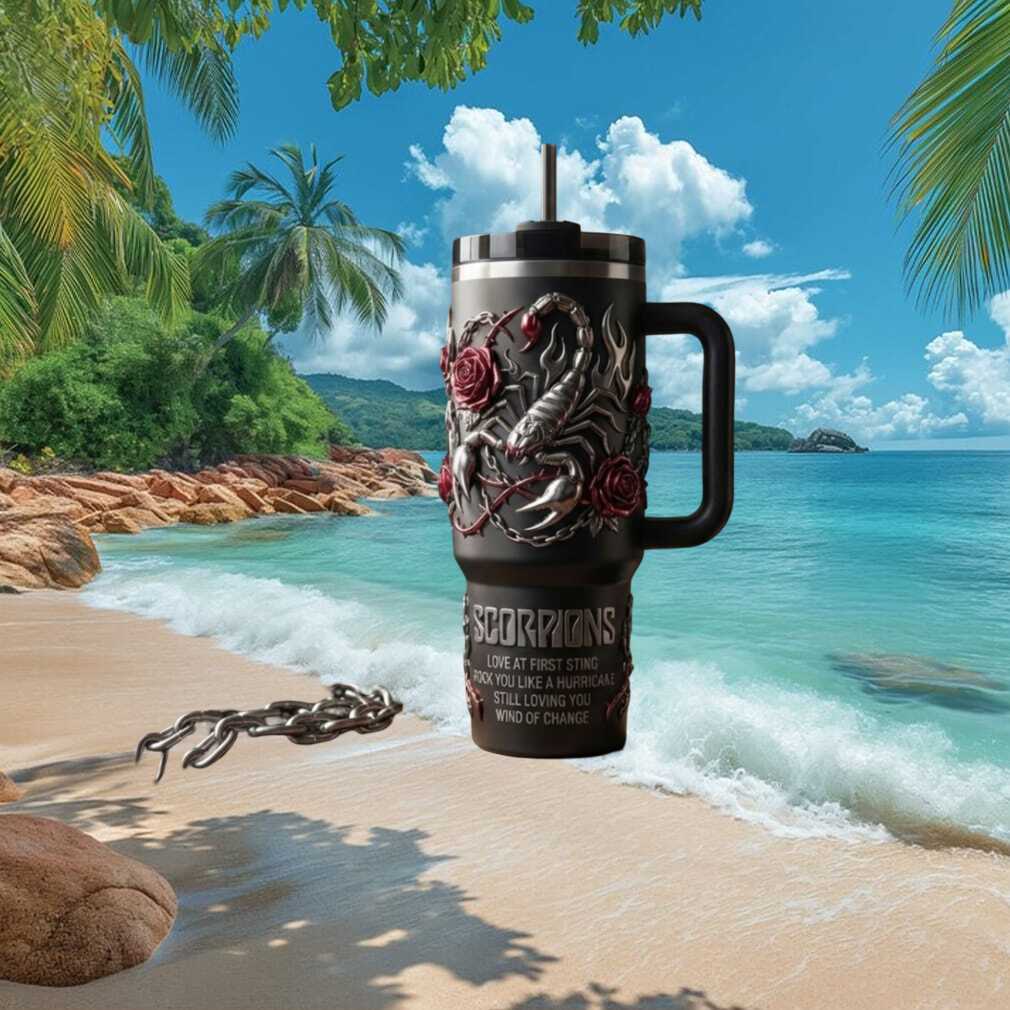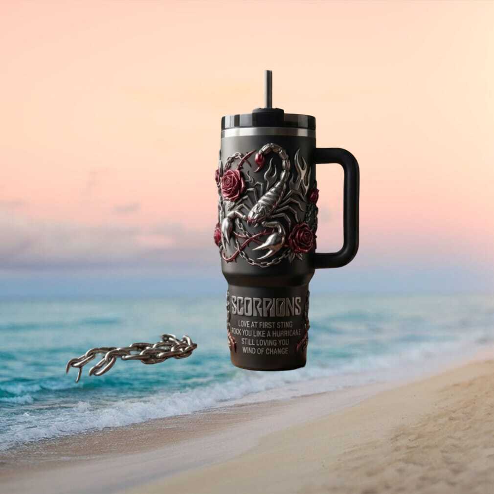 Elevate your collection with the Scorpions Rock Band Scorpion And Rose 3D Love At First Sting Tumbler. This premium 40oz insulated tumbler combines fan passion with superior craftsmanship — double-wall vacuum insulation keeps drinks hot or cold for hours while the bold design turns heads. Double-walled for all-day temperature retention, it’s as functional as it is stunning. Makes an exceptional gift for fans, collectors, and anyone with exceptional taste.
