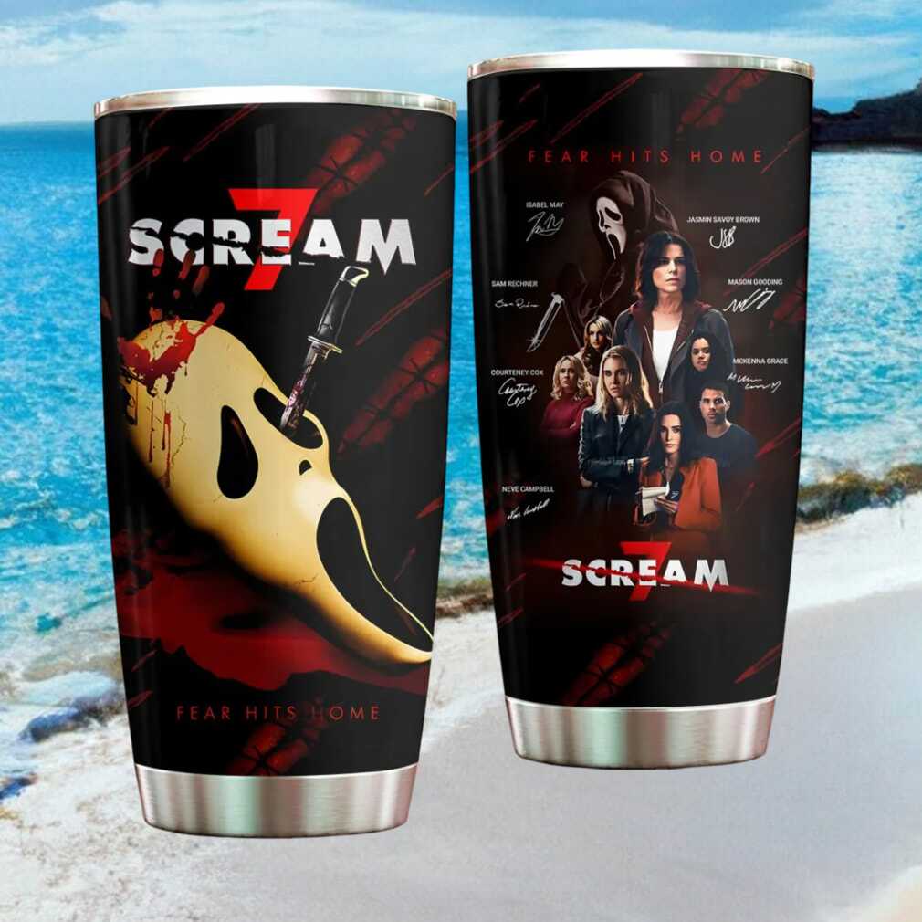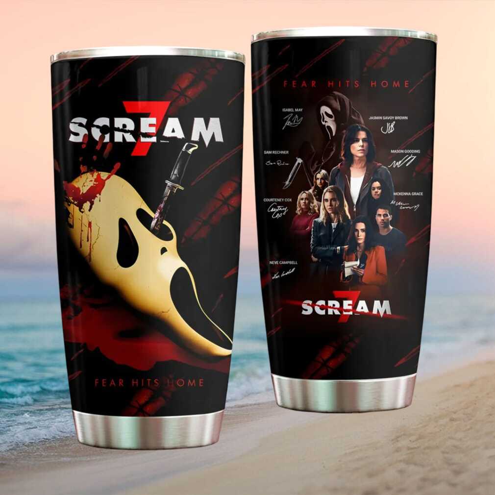 (Scream 7 “Fear Hits Home” Cast Graphic 20oz Tapered Tumbler)Scream 7 “Fear Hits Home” Cast Graphic 20oz Tapered Tumbler, Treat yourself or make a great gift for your loved ones