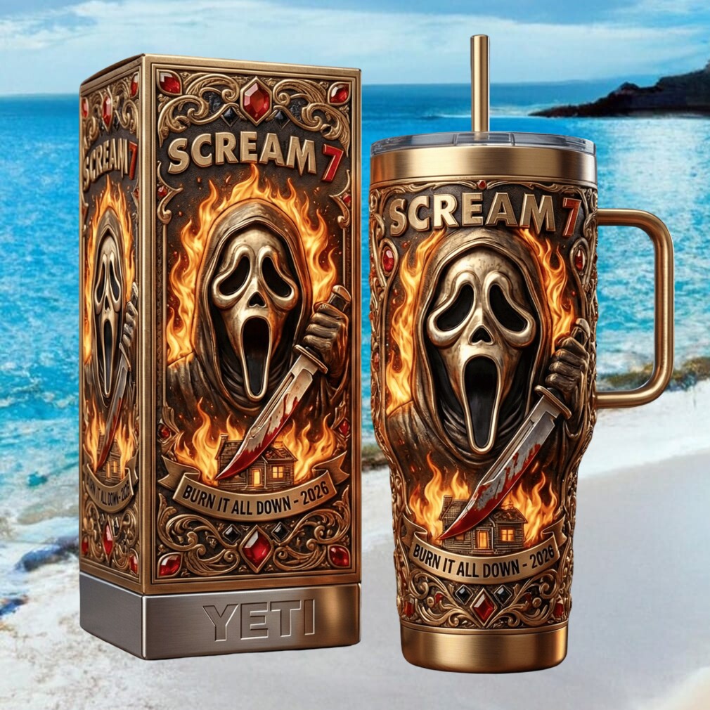 (Scream 7 Ghostface Burn It All Down 2026 Horror Movie 40oz Tumbler)Scream 7 Ghostface Burn It All Down 2026 Horror Movie 40oz Tumbler, Treat yourself or make a great gift for your loved ones