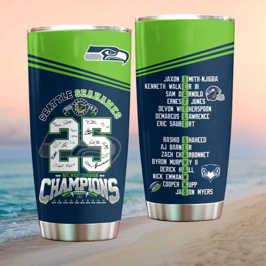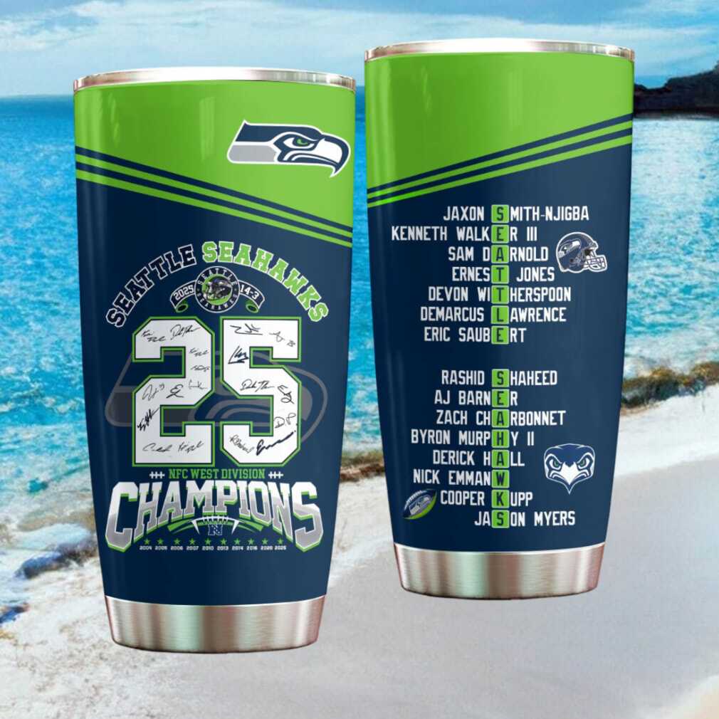 (Seattle Seahawks 2025 NFC West Champions Signed Player Roster Commemorative Tumbler)Seattle Seahawks 2025 NFC West Champions Signed Player Roster Commemorative Tumbler, Treat yourself or make a great gift for your loved ones