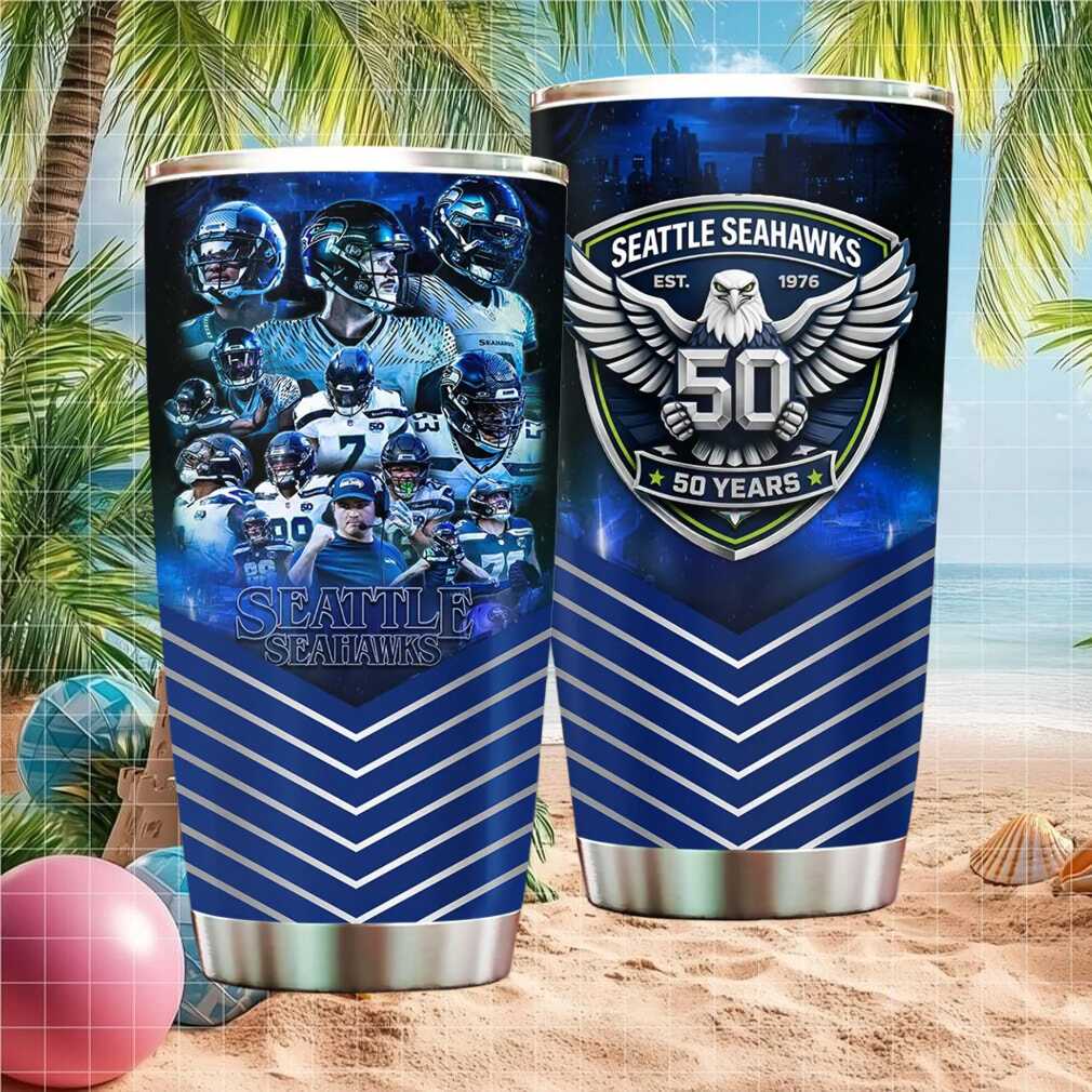 (Seattle Seahawks 50 Years Anniversary Tumbler Est 1976 Team Player Collage)Seattle Seahawks 50 Years Anniversary Tumbler Est 1976 Team Player Collage, Treat yourself or make a great gift for your loved ones