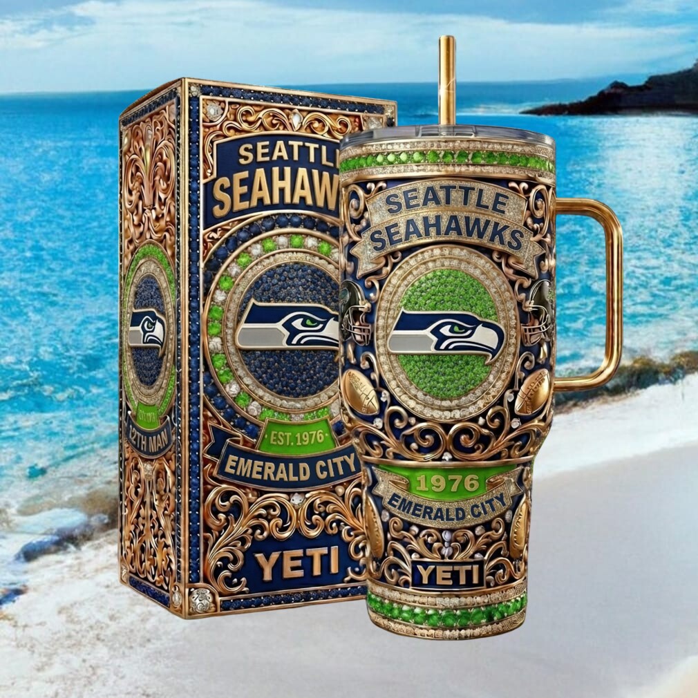 (Seattle Seahawks Emerald City Edition Custom Jeweled Yeti Tumbler)Seattle Seahawks Emerald City Edition Custom Jeweled Yeti Tumbler, Treat yourself or make a great gift for your loved ones