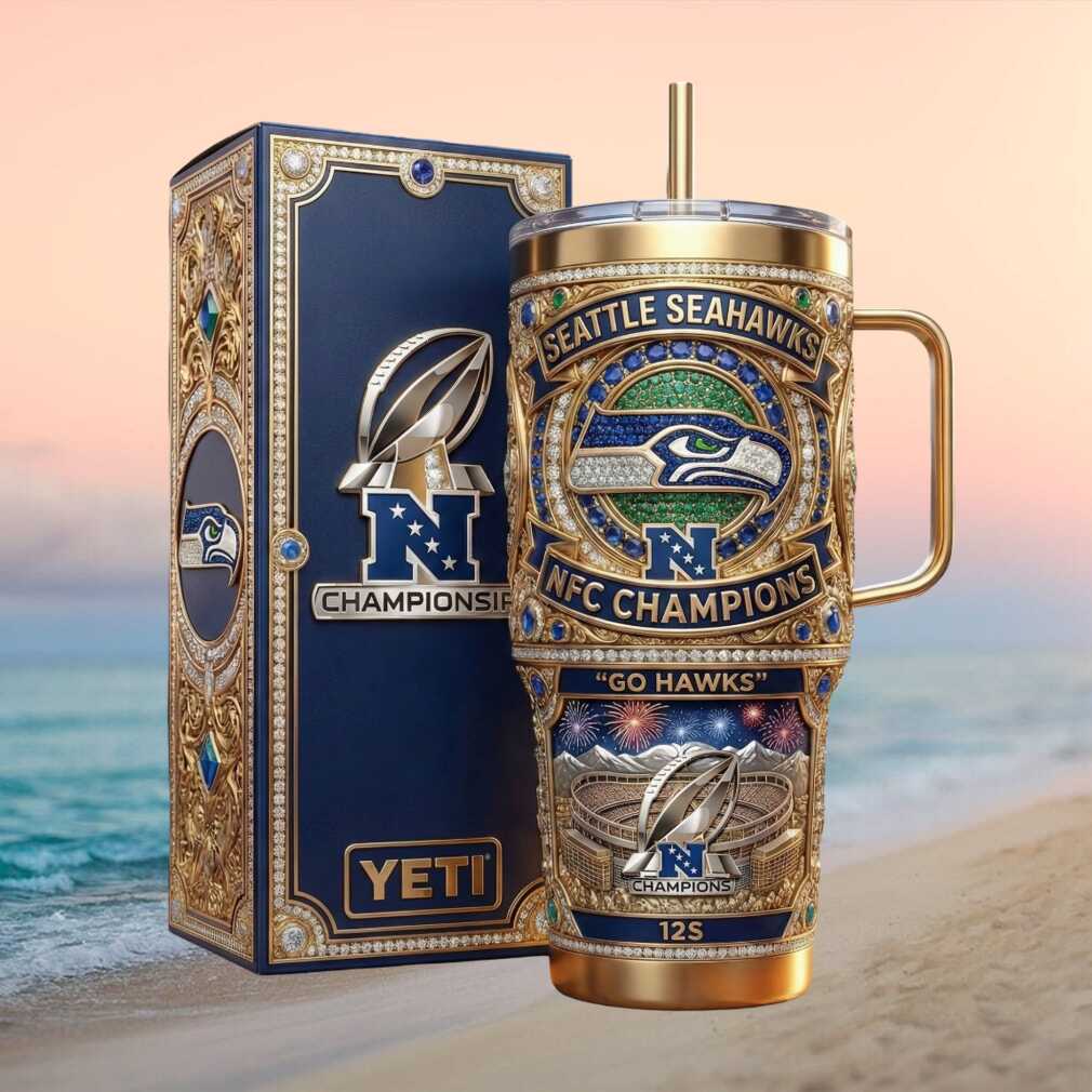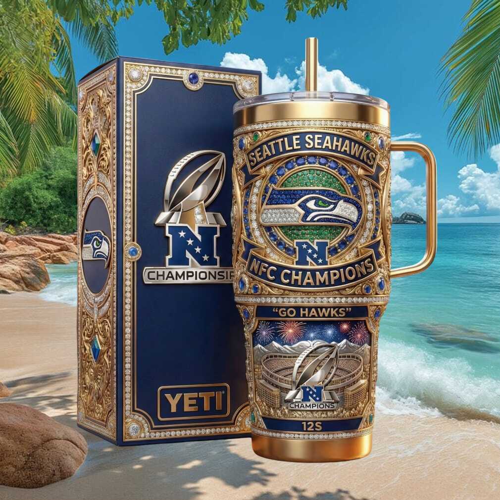 (Seattle Seahawks NFC Champions “12s” Luxury Gold & Jewel Inlaid 40oz Tumbler)Seattle Seahawks NFC Champions “12s” Luxury Gold & Jewel Inlaid 40oz Tumbler, Treat yourself or make a great gift for your loved ones