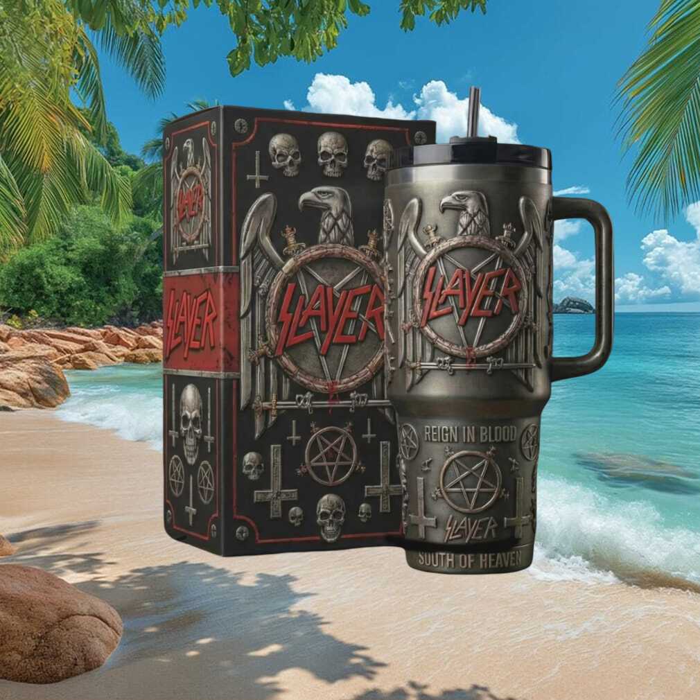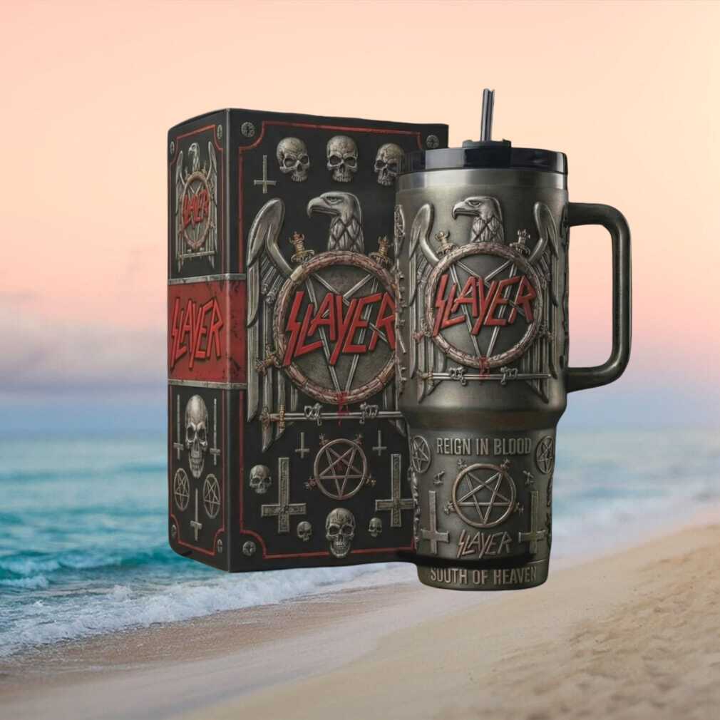 Elevate your collection with the Slayer Reign In Blood Heavy Metal 3D Skull Eagle Collector Tumbler. This premium 40oz insulated tumbler combines fan passion with superior craftsmanship — double-wall vacuum insulation keeps drinks hot or cold for hours while the bold design turns heads. Double-walled for all-day temperature retention, it’s as functional as it is stunning. Makes an exceptional gift for fans, collectors, and anyone with exceptional taste.