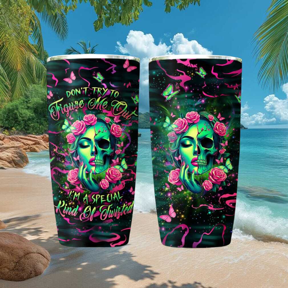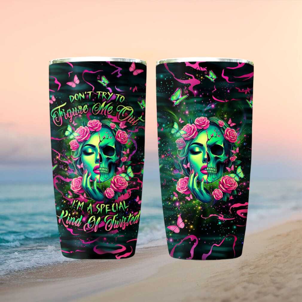 🥤 About Special Kind Of Twisted Half Skull Beauty Neon Tumbler