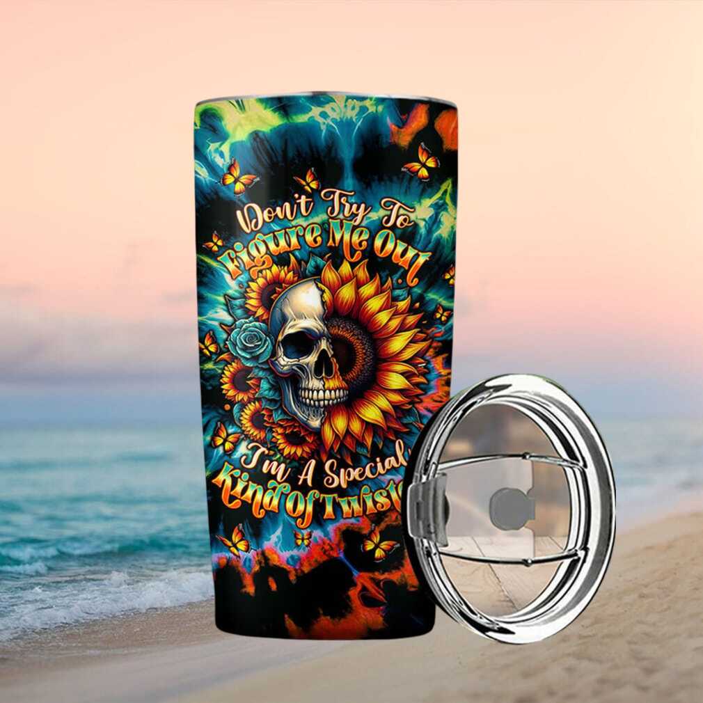 (Special Kind Of Twisted Sunflower Skull and Butterflies Vibrant Design Tumbler)