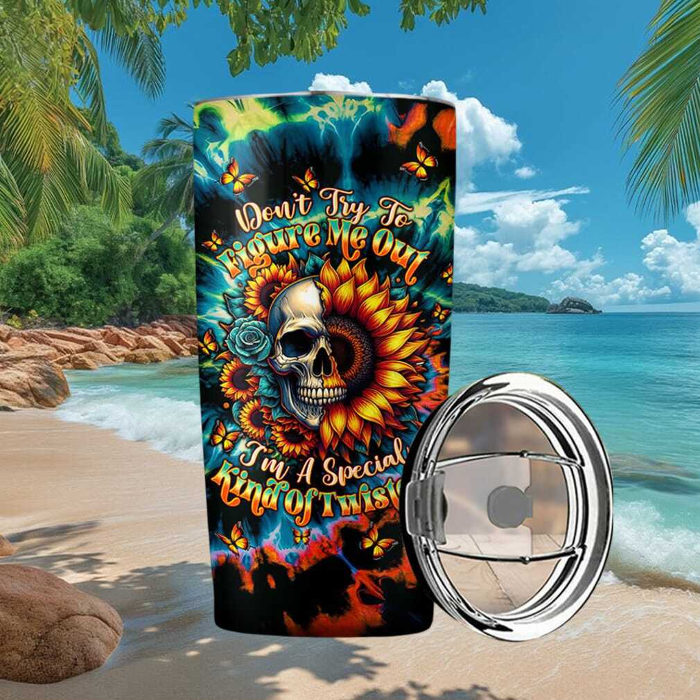 🥤 About Special Kind Of Twisted Sunflower Skull and Butterflies Vibrant Design Tumbler