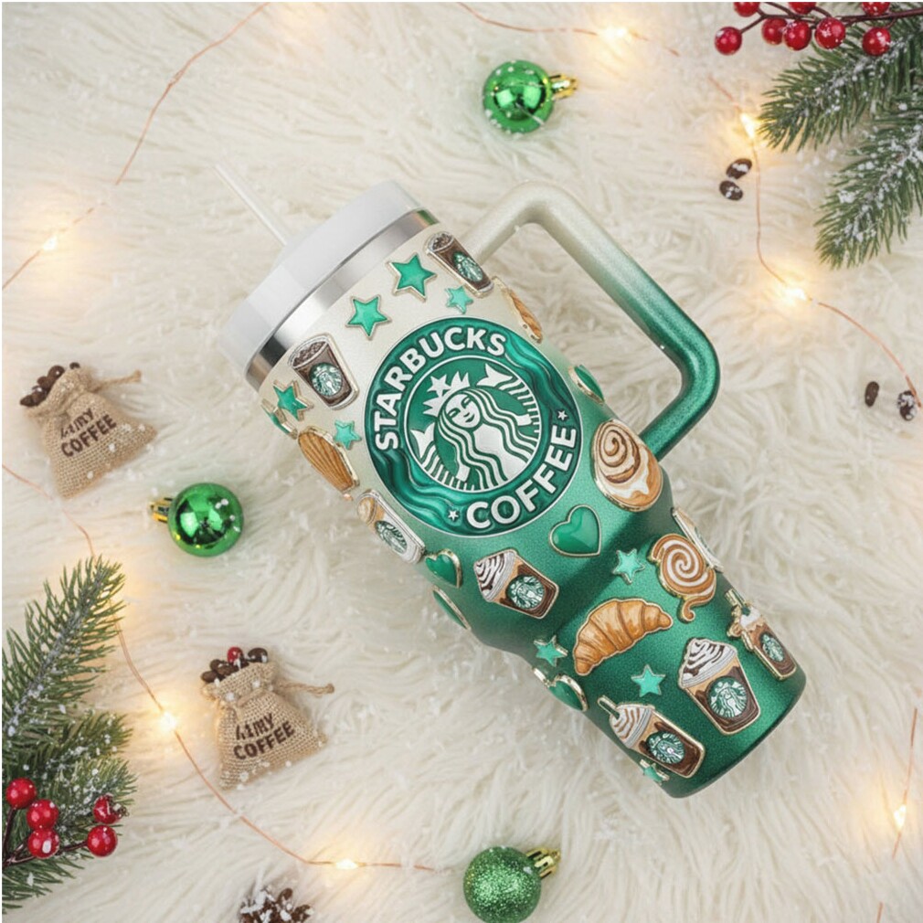 As the holiday season sparkles into view, imagine wrapping your hand around the perfect festive companion for your favorite brew. This isn’t just any tumbler; it’s the Starbucks 40oz Green Holiday Tumbler with Handle and Straw, ready to infuse your daily routine with a touch of seasonal cheer. Whether you’re hurrying through a bustling morning or enjoying a quiet moment by the fire, this custom Starbucks cup keeps your drink just how you like it. It’s a delightful blend of practicality and festive spirit, designed for those who cherish their coffee (or tea) and the magic of the holidays.