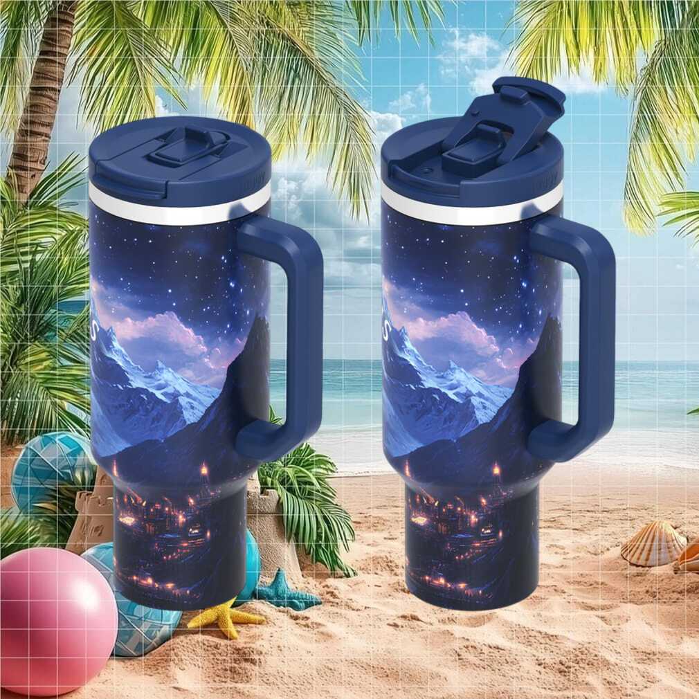 (Starry Night Mountain Landscape & City Lights Aesthetic Travel Tumbler)Starry Night Mountain Landscape & City Lights Aesthetic Travel Tumbler, Treat yourself or make a great gift for your loved ones