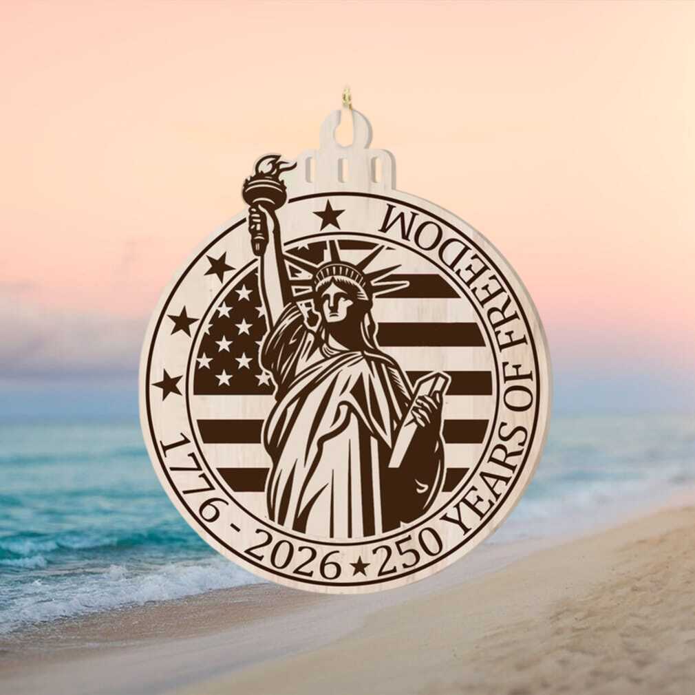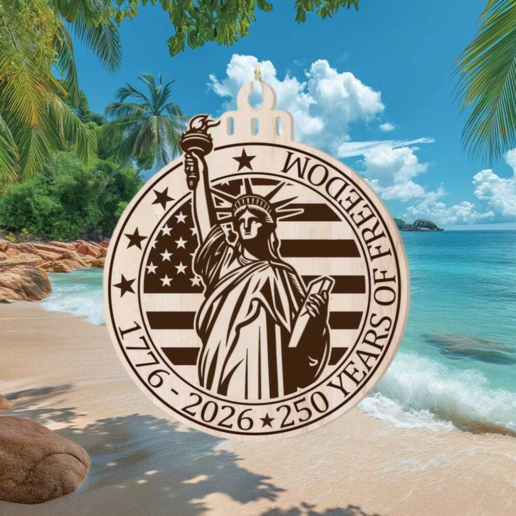 🥤 About Statue of Liberty 250 Years of Freedom 1776 2026 Engraved Wood Ornament