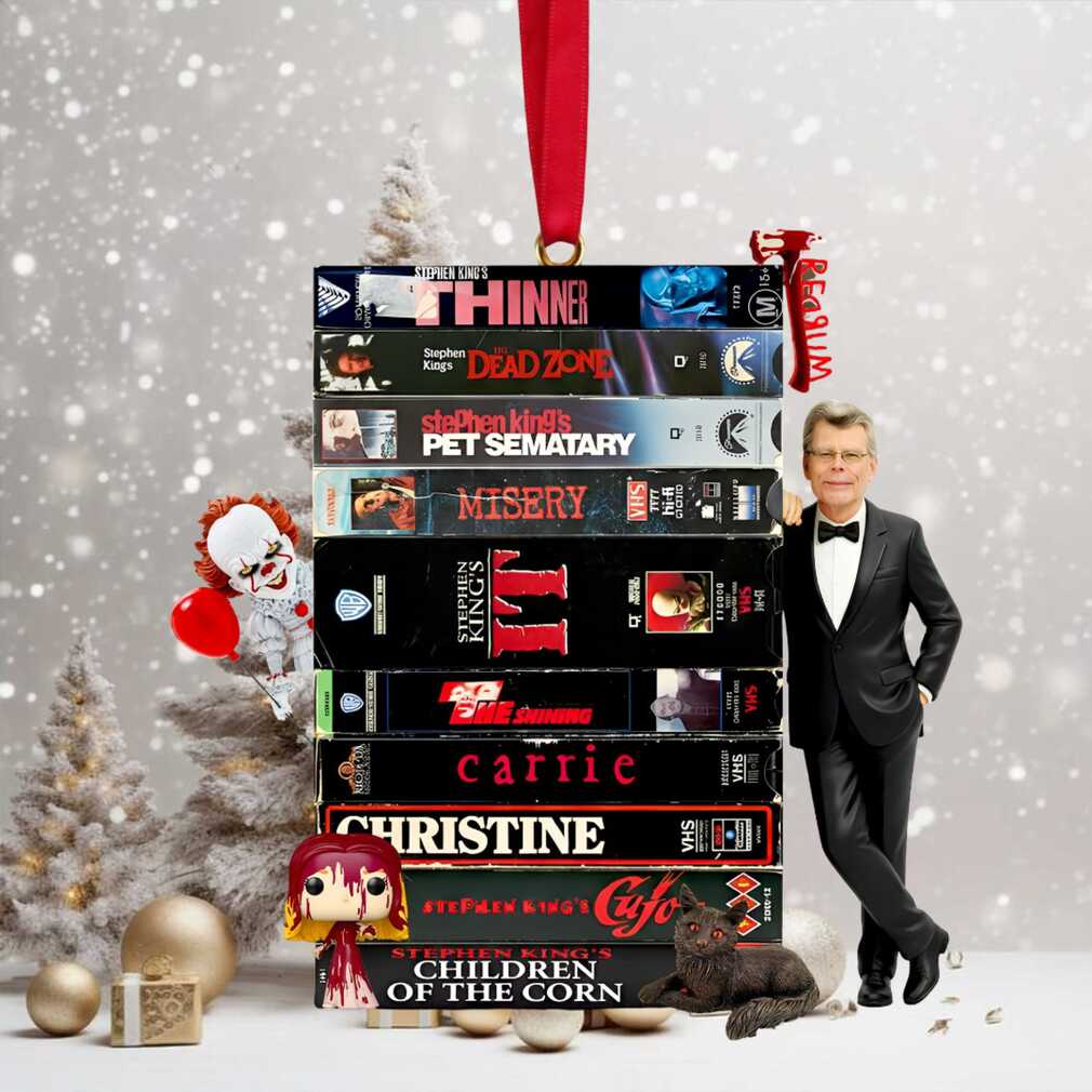 For the ultimate horror aficionado, introduce a spine-chilling touch to your holiday decor with the Stephen King’s Horror Movie VHS Stack Ornament. Imagine a miniature stack of classic horror flicks, each a nod to the master of suspense himself, Stephen King. Perfect for horror fans and collectors alike, this ornament adds a thrilling twist to your Christmas tree.