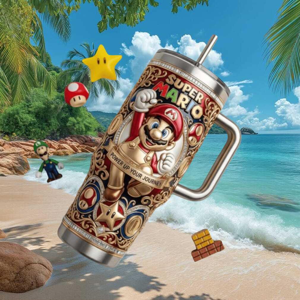 🥤 About Super Mario “Power Up Your Journey” 3D Embossed Nintendo Fan Tumbler