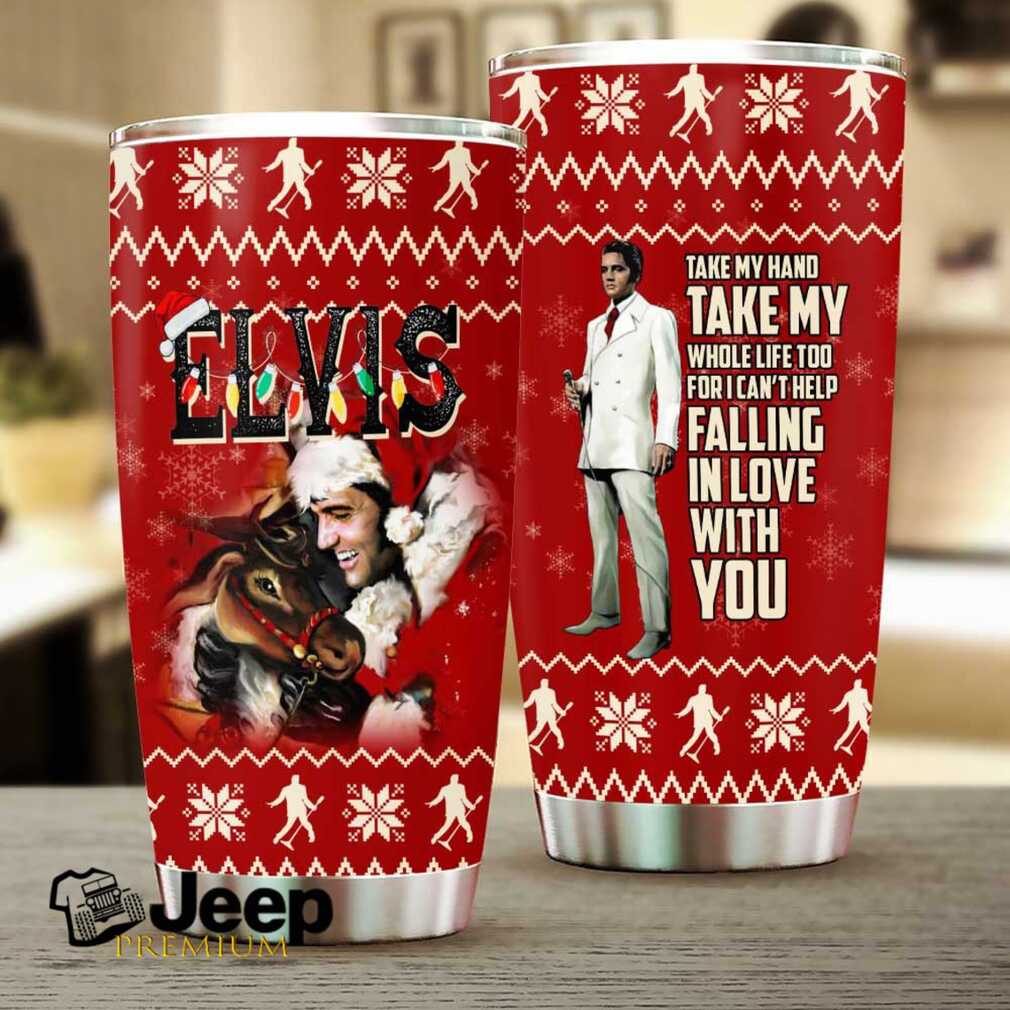 The Take My Hand Elvis Presley Ugly Christmas Sweater Tumbler combines the timeless appeal of Elvis with the joyful silliness of holiday sweaters. Featuring a unique design that reimagines the King in a festive, “ugly sweater” style, this tumbler is sure to be a conversation starter at any holiday gathering. Its double-wall insulation is perfect for keeping your favorite seasonal beverages at the ideal temperature, from steaming spiced cider to frosty festive cocktails. Made with durable materials, it’s designed to withstand the holiday hustle and bustle, making it a cheerful and long-lasting addition to your holiday collection or a memorable gift for an Elvis fan.