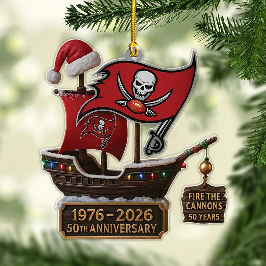 Celebrate 50 years of swashbuckling football with this Tampa Bay Buccaneers 50th Anniversary Pirate Ship Ornament. More than just a decoration, it’s a symbol of your unwavering loyalty to the Pewter and Red. Perfect for passionate fans, this unique ornament brings a piece of Raymond James Stadium’s spirit to your home, commemorating the Buccaneers’ milestone anniversary and seafaring swagger.