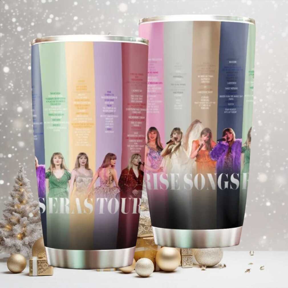 This isn’t just a tumbler; it’s a wearable history of Taylor Swift’s musical journey. Featuring a visually stunning collage of her album names and memorable outfits, it’s a constant reminder of the evolution of a global superstar. Crafted from durable stainless steel, it keeps your drinks perfectly chilled or warm for hours. Whether you’re attending the tour or reminiscing about past eras, this tumbler is your perfect companion.